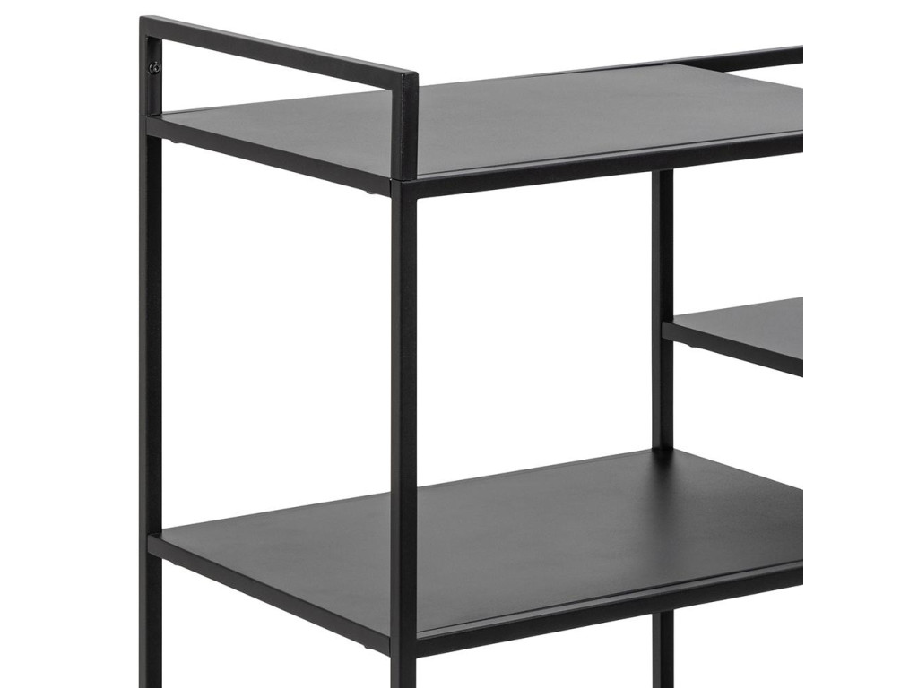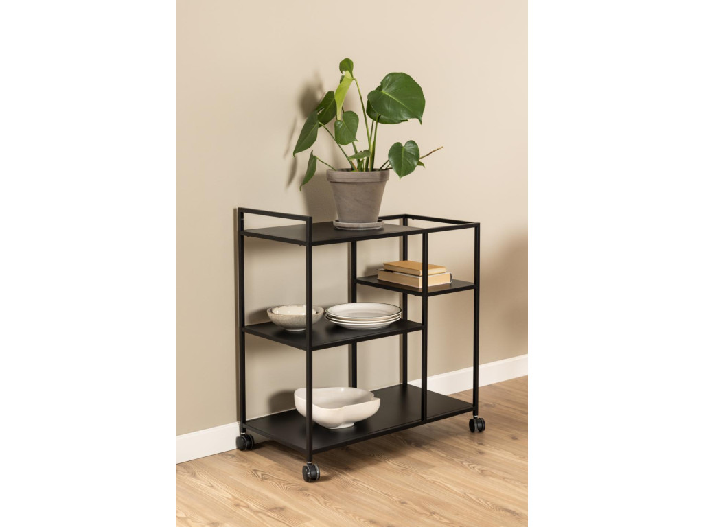 Servírovací stolík Newcastle z čiernej ocele prináša industriálny štýl do kuchyne či obývačky. Jeho hranatý dizajn s asymetrickým prevedením pôsobí nadčasovo a zároveň prakticky.