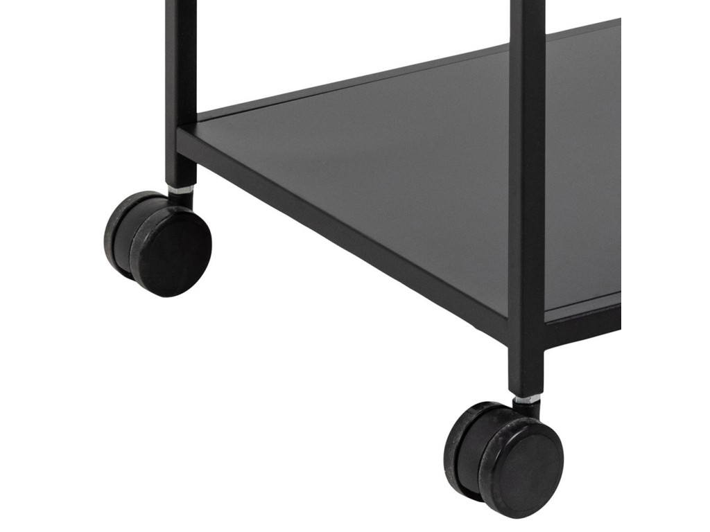 Tento servírovací vozík z kolekcie Newcastle prináša praktické úložné riešenie s výrazným dizajnom. Vyrobený je kompletne z ocele s matným čiernym práškovým nástrekom, čo mu dodáva pevnosť, odolnosť a zároveň elegantne surový industriálny nádych. Jeho úzky obdĺžnikový tvar a asymetricky riešené detaily z neho robia ideálneho pomocníka do menších priestorov, kuchýň, jedální či pracovných zón. Brzdené kolieska umožňujú jednoduchý pohyb aj stabilné ukotvenie, čím sa vozík stáva flexibilným doplnkom, ktorý je pripravený na akúkoľvek úlohu – od servírovania až po uskladnenie.