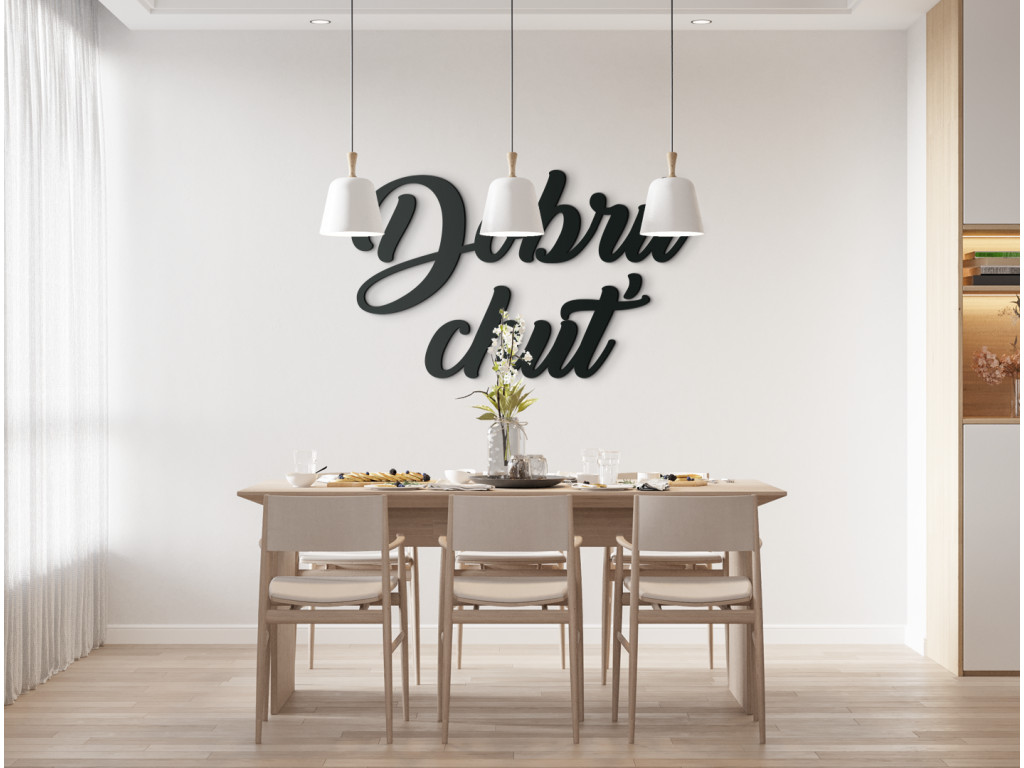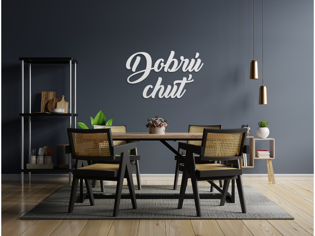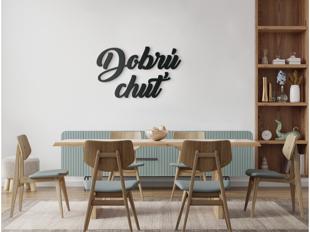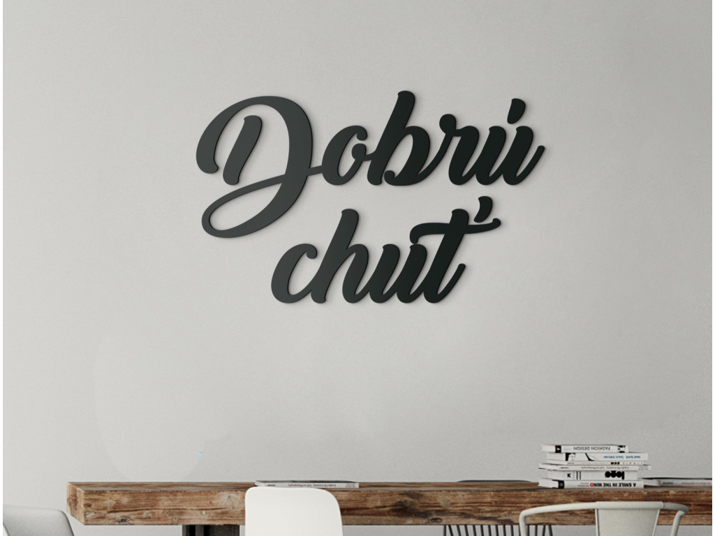 Nadčasová 3D drevená nálepka na stenu Dobrú chuť podčiarkne jedinečný štýl každej jedálne i kuchyne. Nápis Dobrú chuť je vždy vysoko aktuálny a nepodlieha módnym trendom. Vďaka tomu je táto drevená dekorácia vhodná aj ako darček pri akejkoľvek príležitosti.