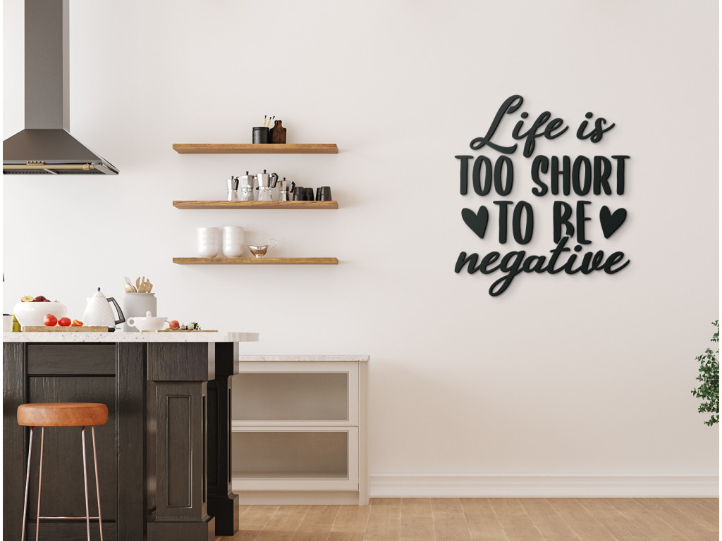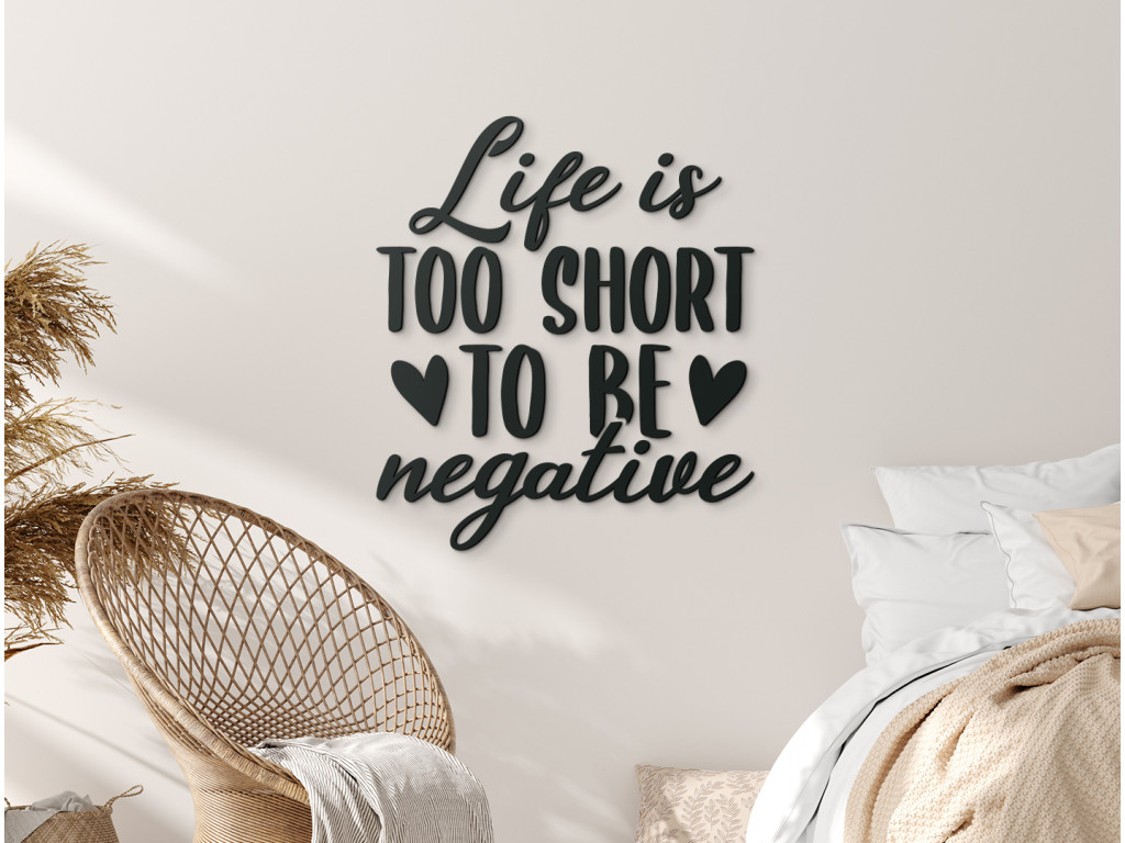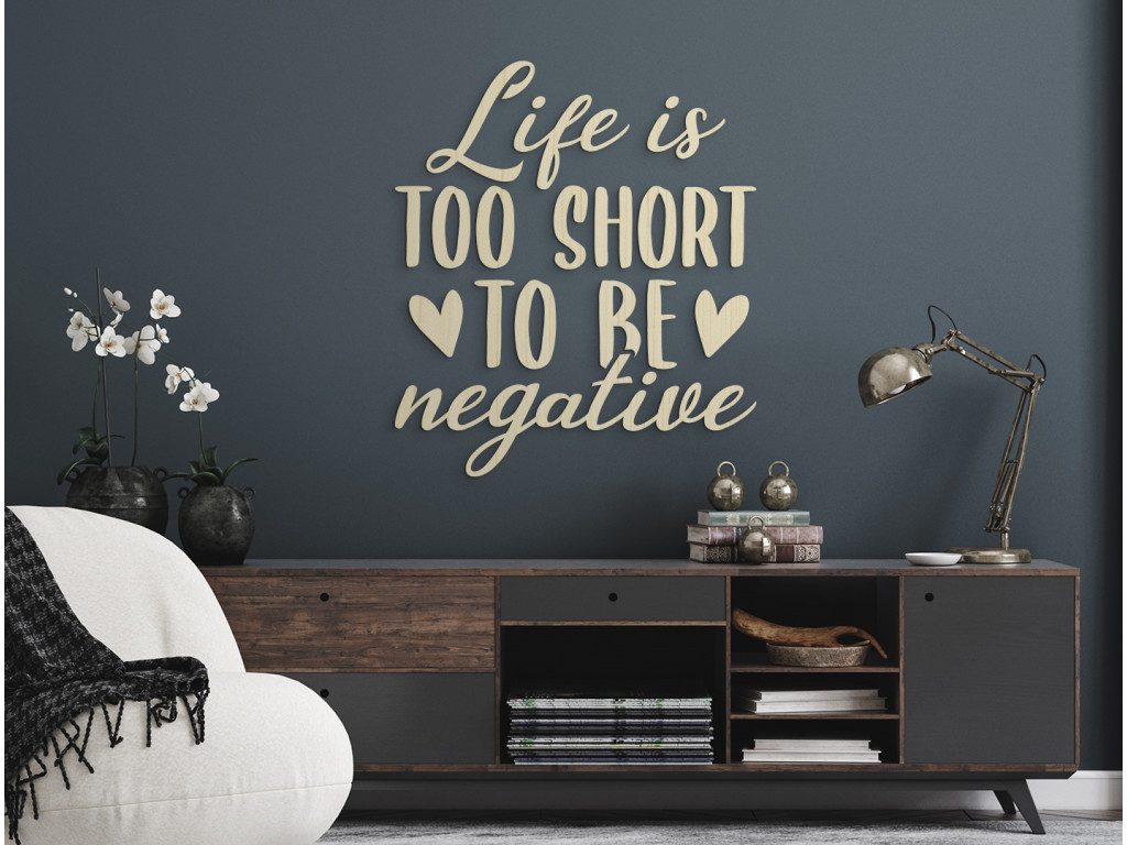 Nálepka na stenu z dreva vám vždy pripomenie, že Život je príliš krátky na to, aby sme boli negatívni. Nalepte si dekoráciu na stenu na dobre viditeľné miesto, aby ste mali anglický motivačný citát stále na očiach. Zladiť ho so zvyškom interiéru môžete dokonale, keďže ho vyrábame v 3 rozmeroch a 8 odtieňoch dreva.