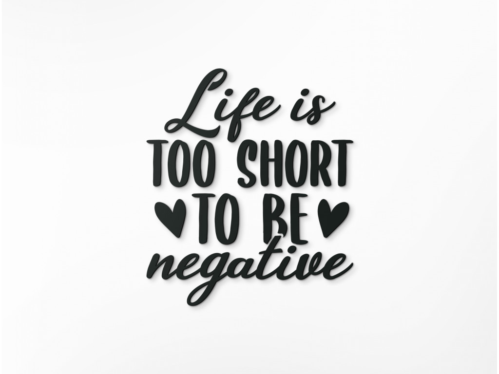 Ak ste zástancom pozitívneho myslenia, drevený citát Life is too short to be negative poteší vás a aj všetkých, ktorí si ho prečítajú. Motivačná drevená nálepka zaujme na prvý pohľad nielen svojím povzbudzujúcim odkazom, ale aj dizajnom so srdiečkami a rozličnými typmi písma, ktoré však spoločne vytvárajú moderný celok. Obzvlášť sa hodí do detskej izby, pracovne či spoločných priestorov.