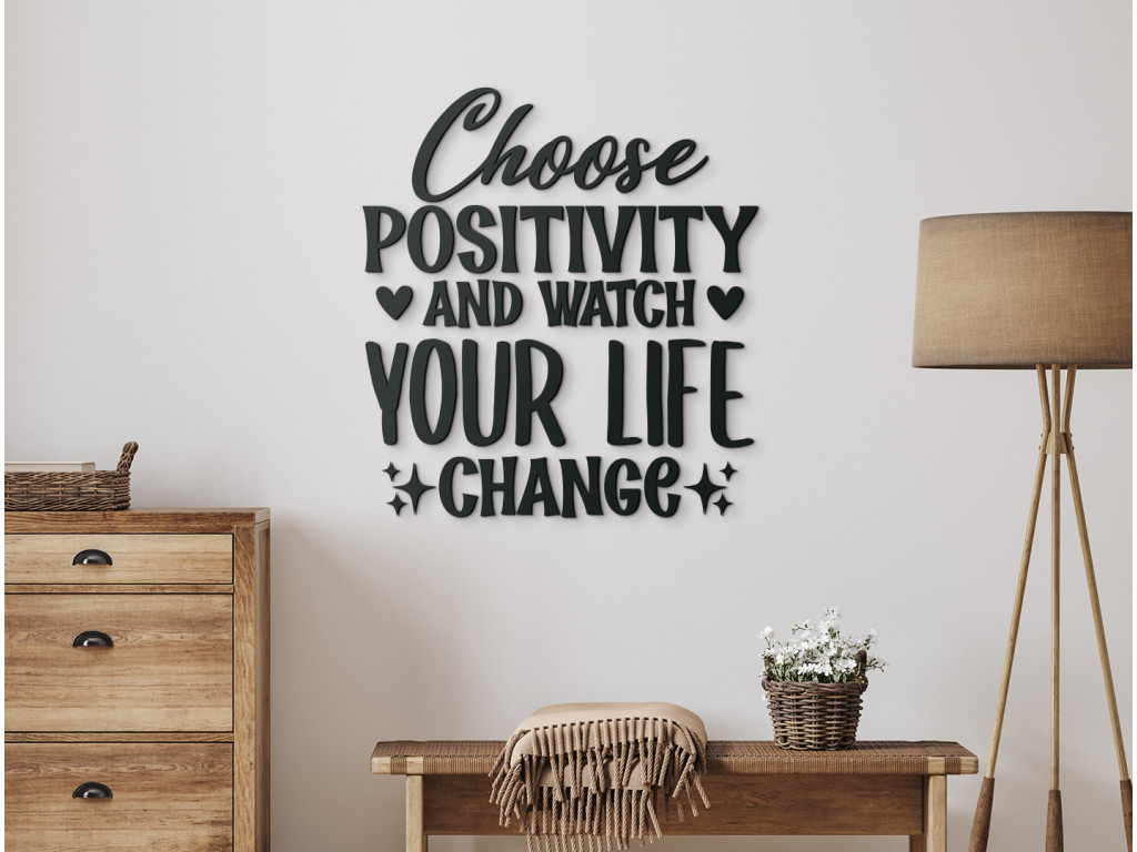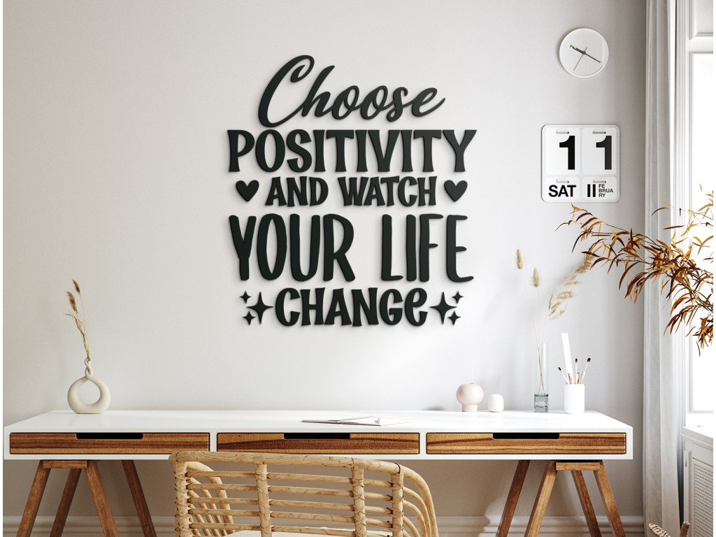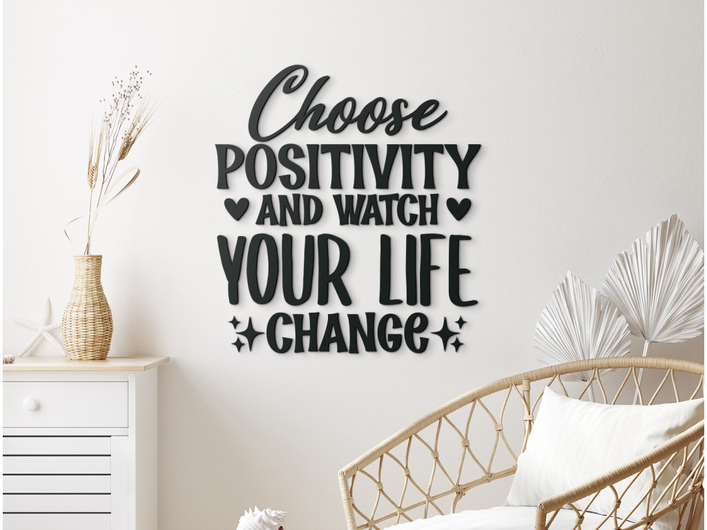 Drevená nálepka na stenu s anglickým znením Vyber si pozitivitu a sleduj, ako sa tvoj život mení, vám bude každý deň pripomínať, že máte myslieť pozitívne. Nalepte si ju na stenu na dobre viditeľné miesto, napríklad nad pracovný stôl alebo do posilňovne, aby ste ju mali stále na očiach v jednom z 2 rozmerov a 8 farieb.