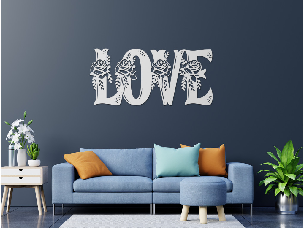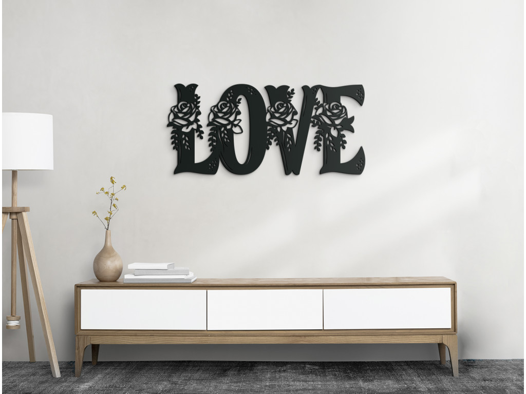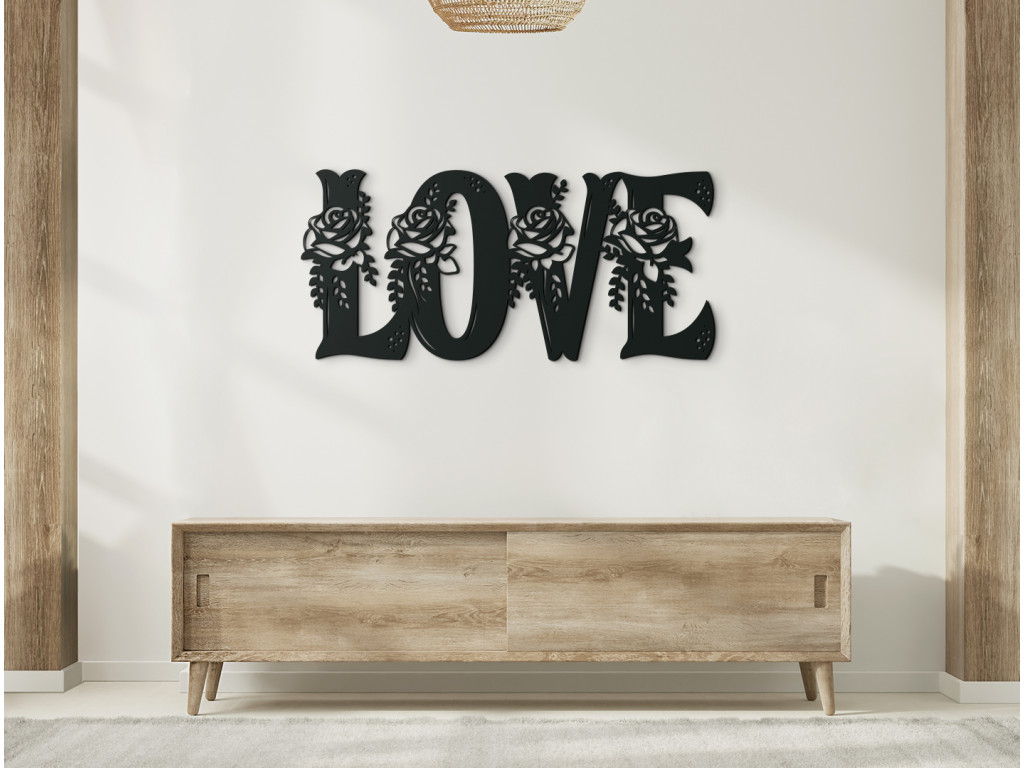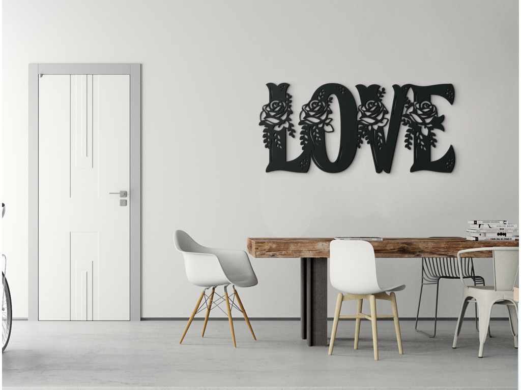 Nálepka s romantickým podtónom vnesie do interiéru pohodlie a originálny dizajn. Nápis LOVE zdobia ruže, ktoré mu pridávajú na jedinečnosti. Dekorácia sa hodí do moderných a minimalistických priestorov, akým je chodba, predsieň či obývačka.