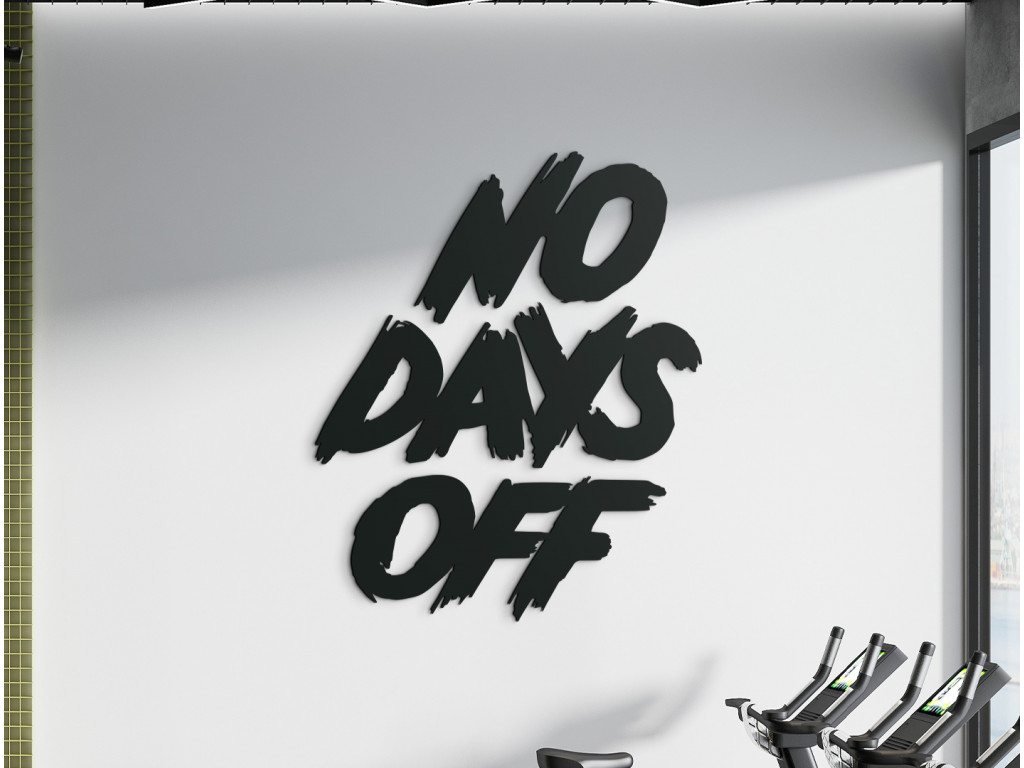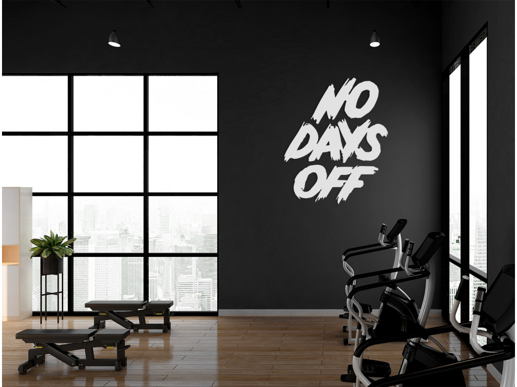 Nápis na stenu No days off je vtipným a originálnym spôsobom, ako oživiť monotónnosť prázdnych stien v pracovni, kancelárii či študentskej izbe. Ak si ju však nalepíte do domácej posilňovne, bude vás motivovať, aby ste sa neustávali vo svojom snažení dosiahnuť vytúžený cieľ. Moderný dizajn a nápaditý obsah výroku zaujmú už na prvý pohľad. Vybrať si môžete z niekoľkých veľkostí i dekorov, takže nálepku ľahko zladíte s nábytkom i ďalšími doplnkami.