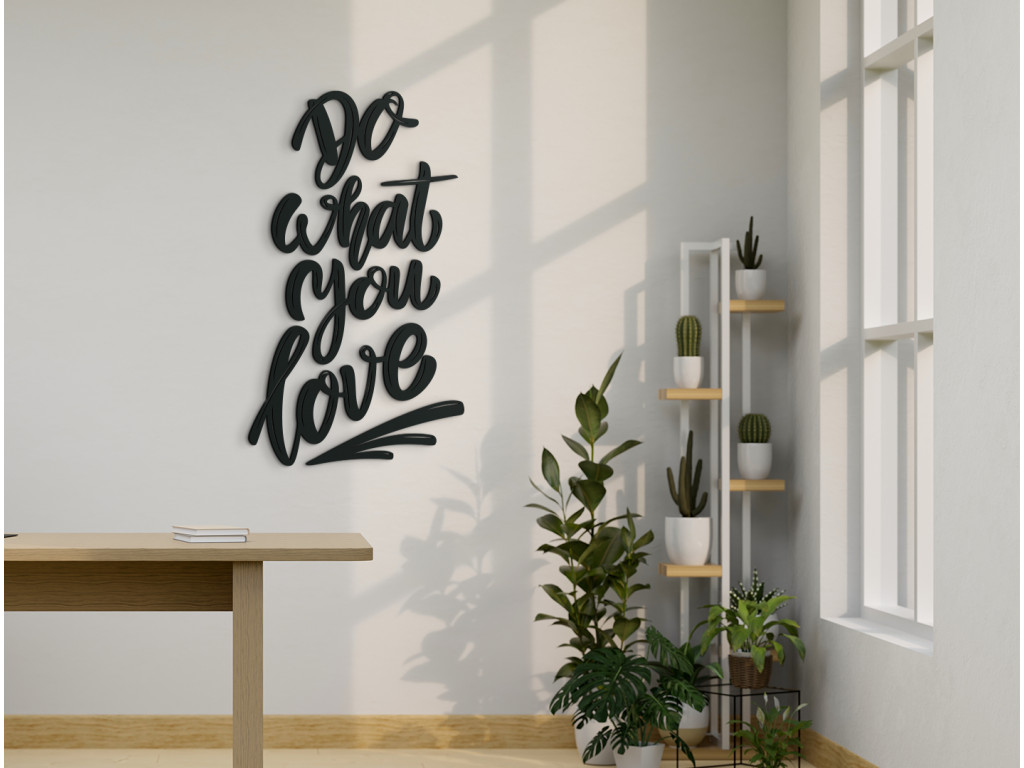 Milujte svoju prácu a váš život bude lepší a úspešnejší. Drevená dekorácia Do what you love, čo v preklade znamená Robte to, čo milujete, resp. to, čo vás baví, si nájde svoje miesto v každom modernom interiéri. Doplnok ľahko zladíte s nábytkom i ďalšími bytovými dekoráciami.