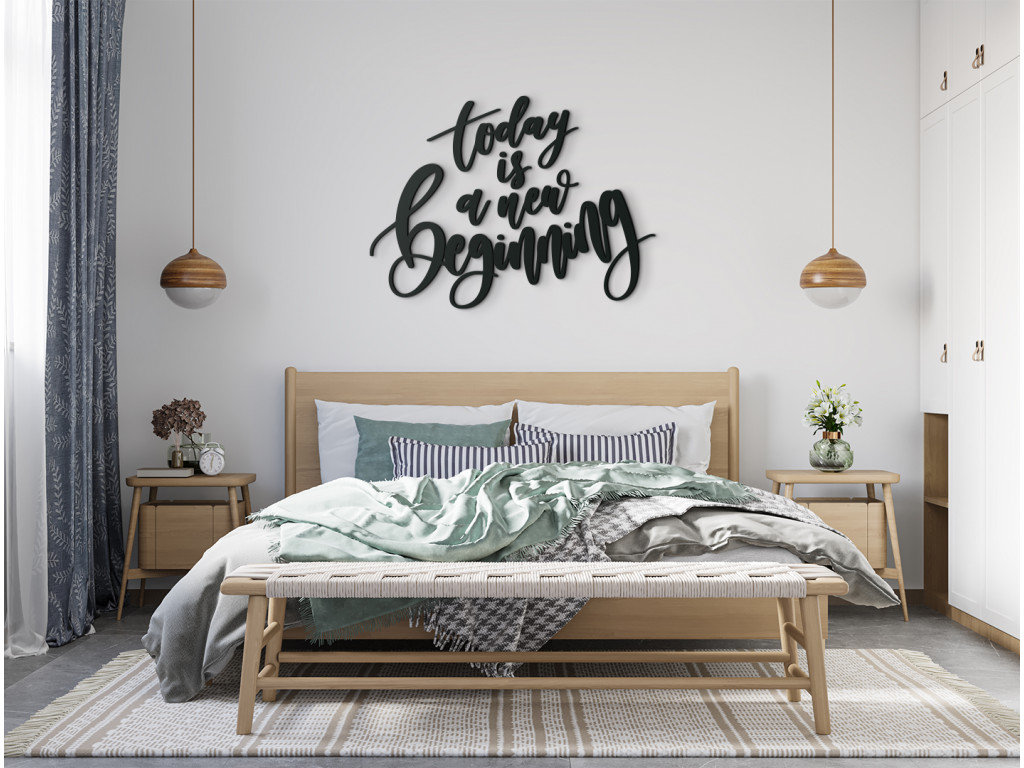 Dnešok je novým začiatkom. Slovenský preklad nápisu Today is a new beginning povzbudzuje k novému začiatku a naštartovaniu každý jeden deň. Dôverujte svojim schopnostiam, bojujte a vytrvajte vo svojom snažení. Heslo Today is a new beginning sa hodí napríklad do kancelárie, domácej pracovne alebo študentskej či internátnej izby.
