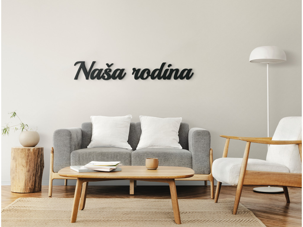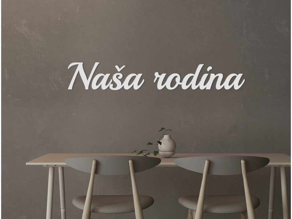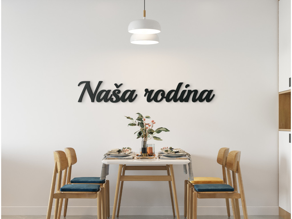 Elegantné písmo textu Naša rodina rozjasní akúkoľvek miestnosť v dome či byte. Drevený nápis sa dokonale hodí nad fotostenu či do spoločných rodinných priestorov. K dispozícii v 3 rozmeroch a 8 farbách dekoru.