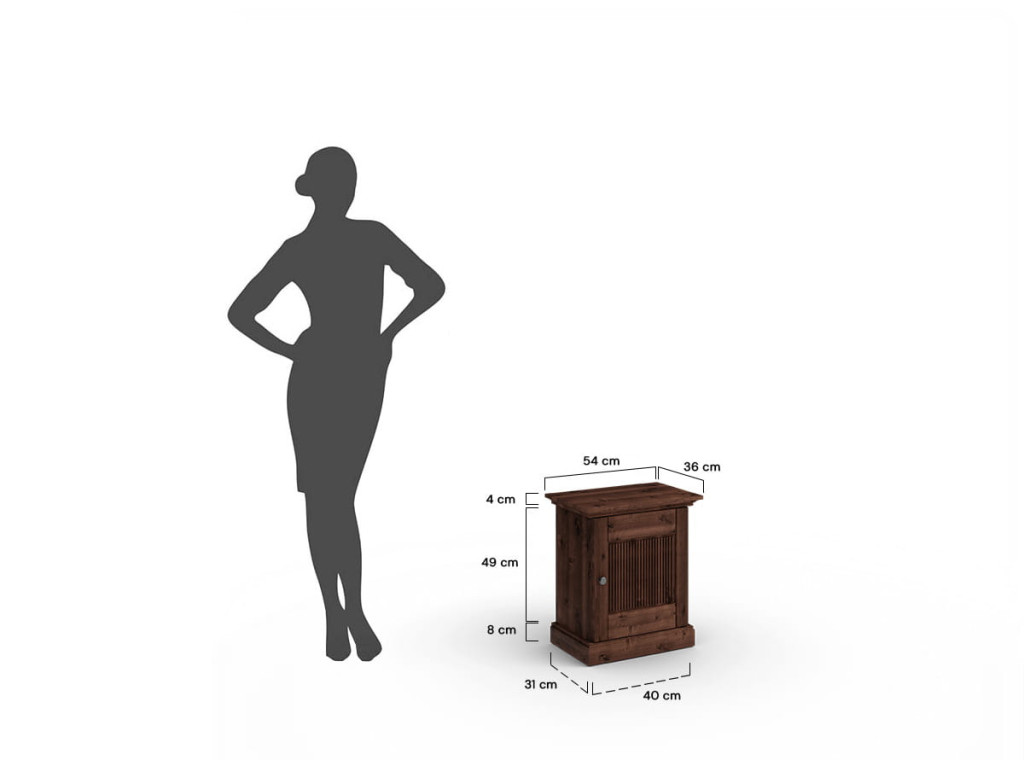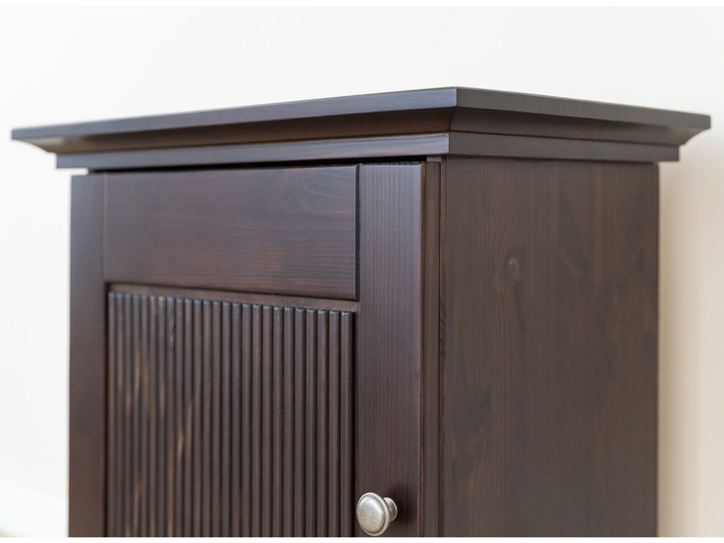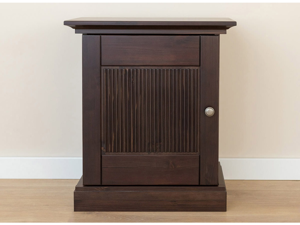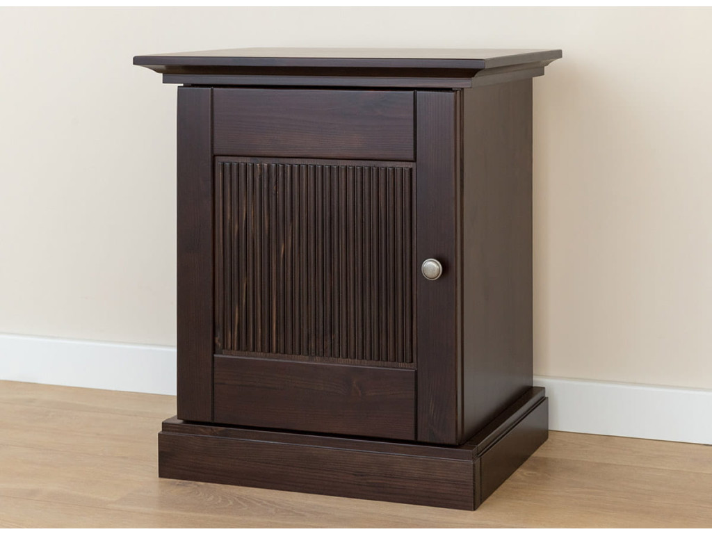 Nočný stolík z masívu Rosella L je navrhnutý s dôrazom na funkčnosť a vizuálnu rovnováhu. Vyrobený z prírodného borovicového masívu, ošetrený ekologickou farbou na vodnej báze so 70 % krytím, si zachováva prirodzenú krásu dreva, pričom odoláva každodennému používaniu. Teplý odtieň tabaku v kombinácii s decentným kovovým kovaním dodáva stolíku osobitý charakter.