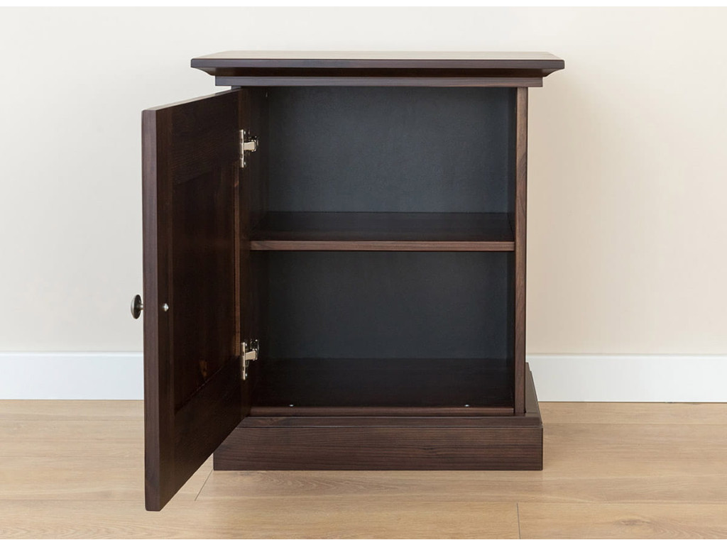 Nočný stolík Rosella L – ľavý je štýlový doplnok k posteli, ktorý kombinuje praktickosť a eleganciu v romantickom duchu. Vyrobený z masívneho borovicového dreva, ponúka jednoduché riešenie úložného priestoru v podobe jedných dvierok s vnútornou poličkou. Teplý tabakový odtieň a kovanie v štýle starého striebra z neho robia harmonický kúsok do spálne. Vynikne najmä ako súčasť kompletnej zostavy Rosella, kde každý detail hrá svoju rolu.