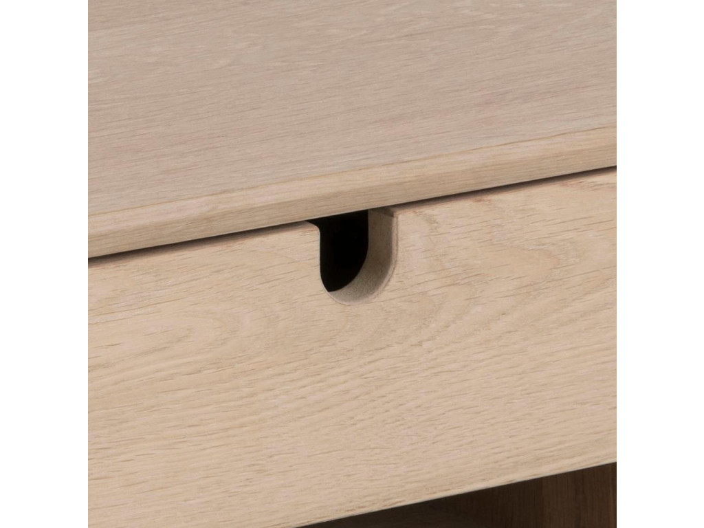 Elegantná „plávajúca“ skrinka Century B prináša do spálne ľahkosť a čistotu škandinávskeho dizajnu. Bielo pigmentovaná, olejovaná dubová dyha zjemňuje prirodzenú kresbu dreva, zatiaľ čo stenová montáž necháva podlahu voľnú a nastavíte si ju presne do výšky matraca. Diskrétnu zásuvku dopĺňa otvorený priečinok, takže nočné nevyhnutnosti zostanú usporiadané, no stále na dosah.
