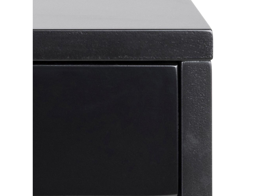 Zásuvka je vybavená kovovými koľajnicami s plným výsuvom, vďaka čomu sa ľahko otvára a umožňuje plný prístup k uloženým predmetom. Otvorená priehradka pod ňou poslúži na knihy či drobnosti, ktoré chcete mať poruke.