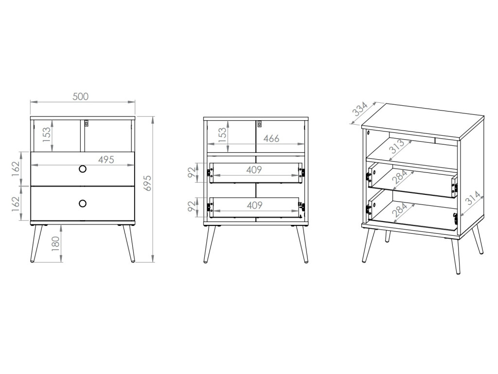 Nábytok je vyrobený z kvalitnej laminovanej dosky, ktorá je odolná voči poškriabaniu, vlhkosti a vysokým teplotám, čo zaručuje jeho dlhú životnosť a trvácnosť. Hrany sú vybavené ABS páskou, ktorá poskytuje dodatočnú ochranu a zvyšuje odolnosť voči opotrebovaniu.