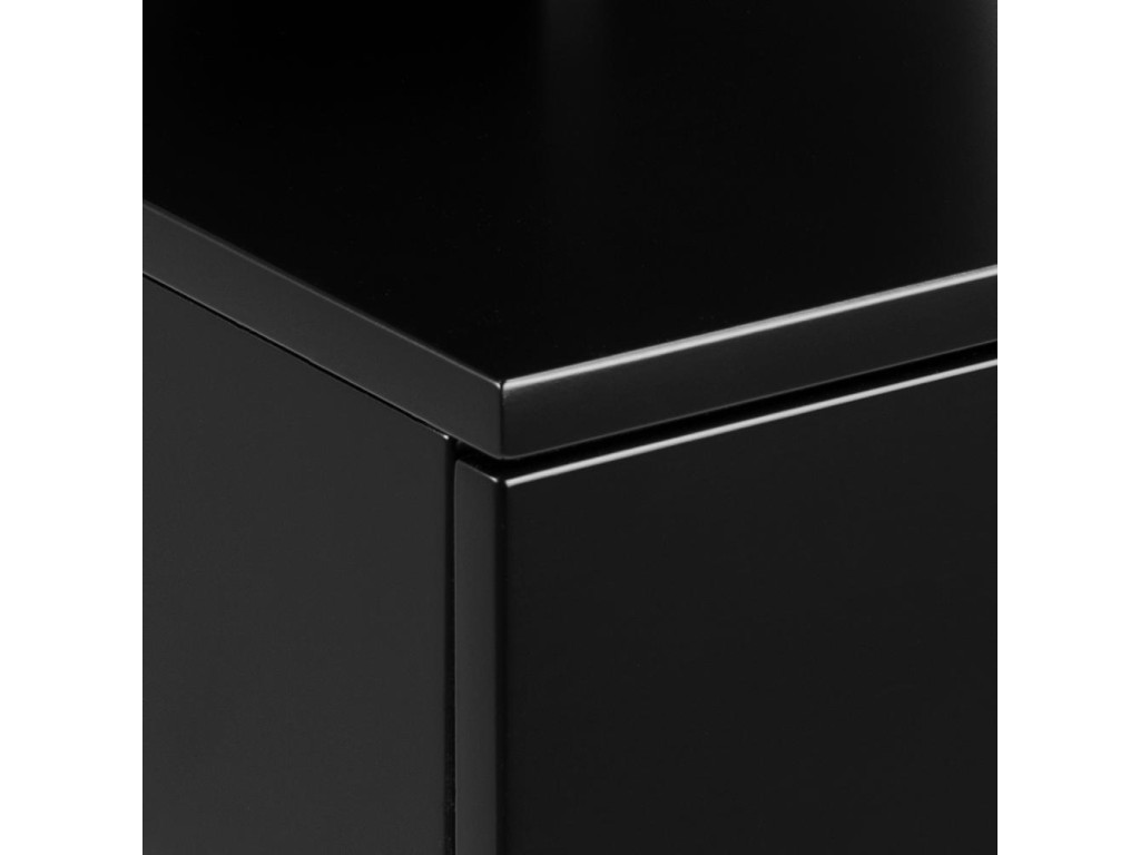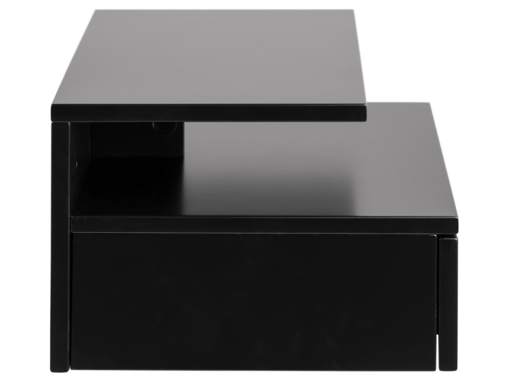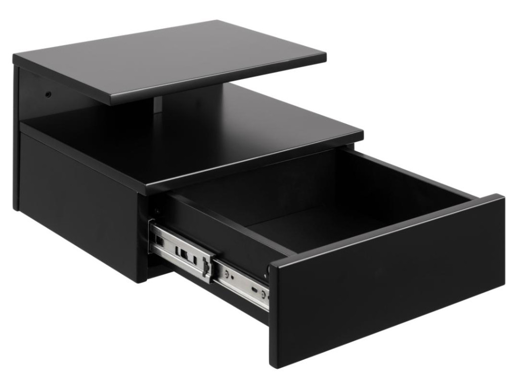Čierny nočný stolík Ashlan A zaujme elegantnou kombináciou jednoduchých línií a praktickej zásuvky. Otvorená priehradka umožňuje odkladanie kníh či doplnkov. Je vhodný na montáž na stenu, čo ho predurčuje pre menšie priestory.