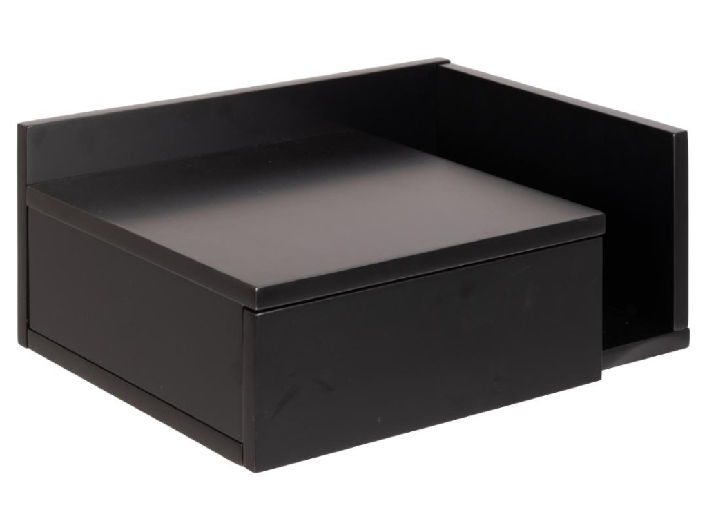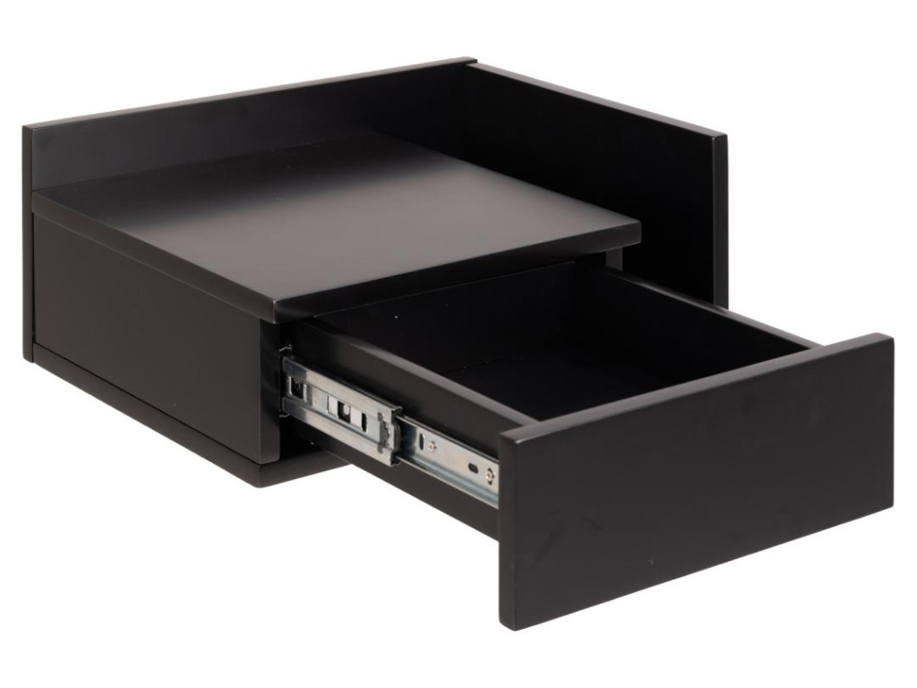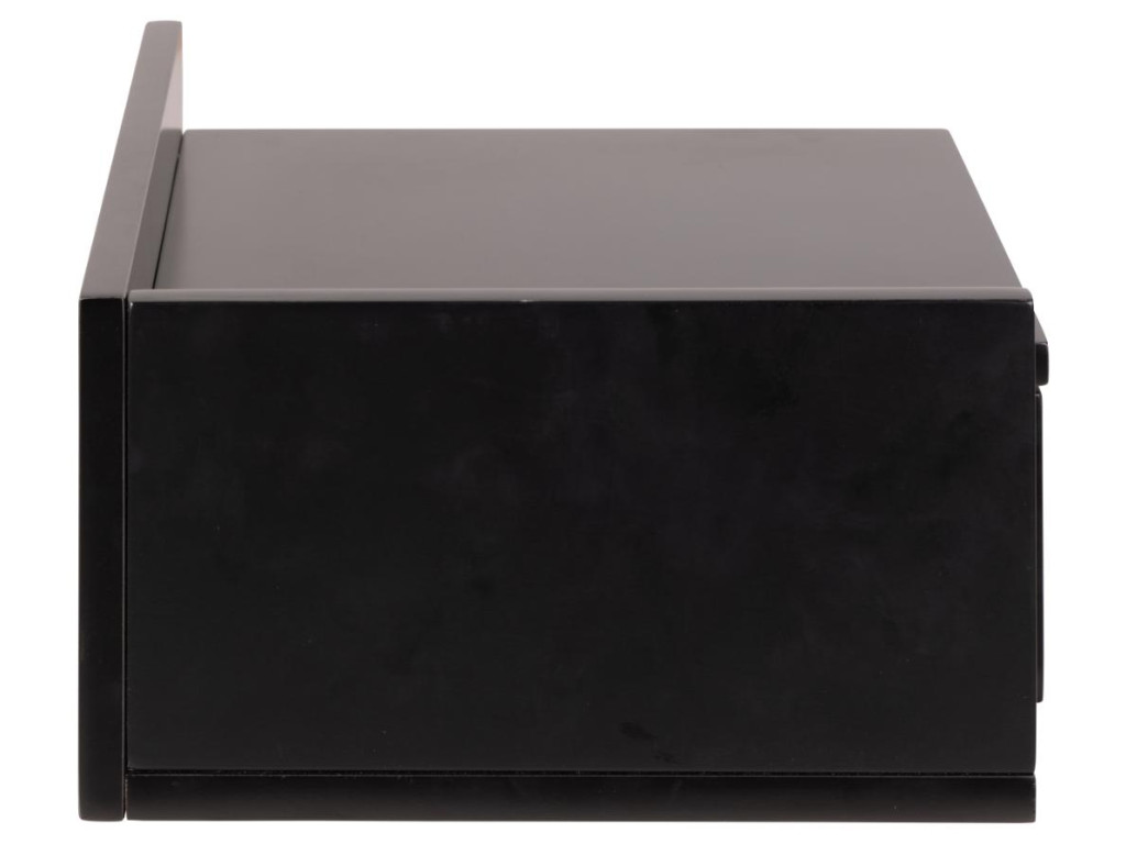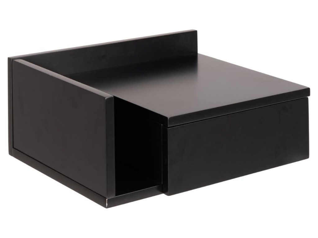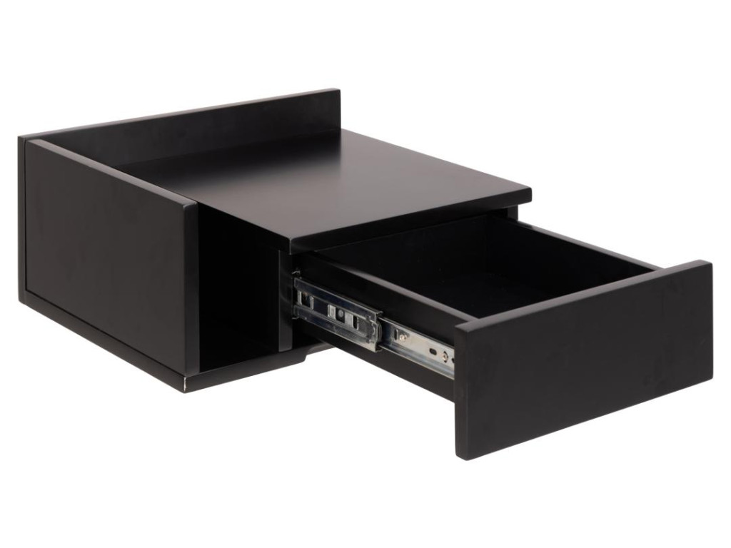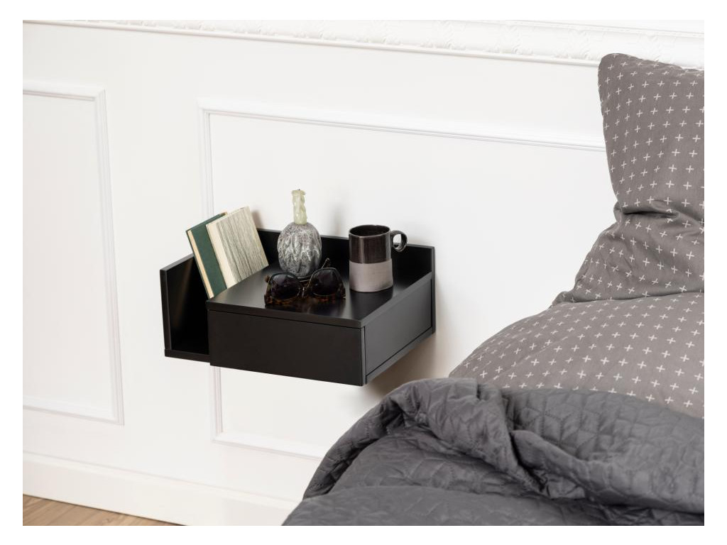Ashlan nočný stolík prináša elegantné riešenie pre malé priestory. Jeho čierna povrchová úprava a hranatý tvar pôsobia moderne. Montáž na stenu uľahčuje čistenie a vytvára vzdušný dojem. Zásuvka s plným výsuvom zabezpečí praktické uloženie vecí.