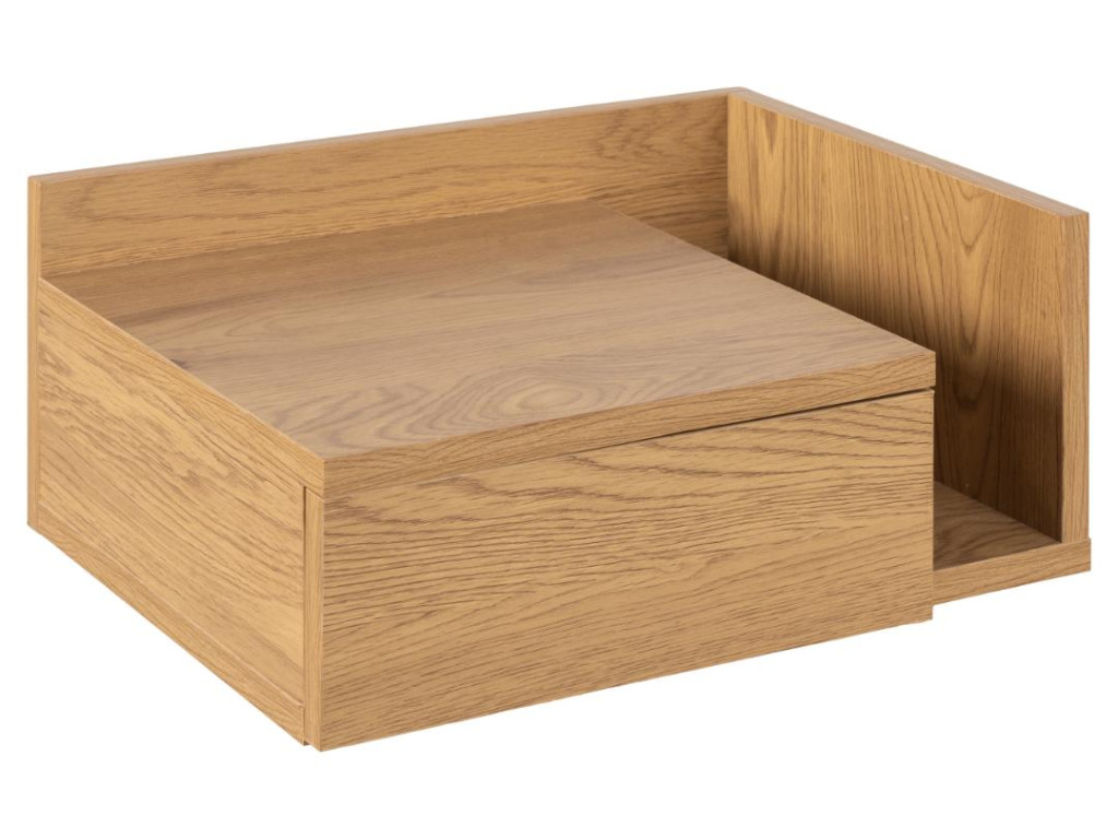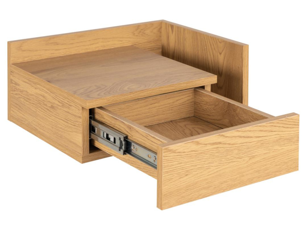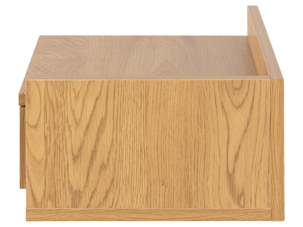 Nástenný nočný stolík Ashlan B v dekore divokého duba šetrí miesto a ponúka praktické úložné riešenie. Obsahuje zásuvku s plným výsuvom a vďaka obojstrannej montáži sa ľahko prispôsobí dispozícii vašej spálne.