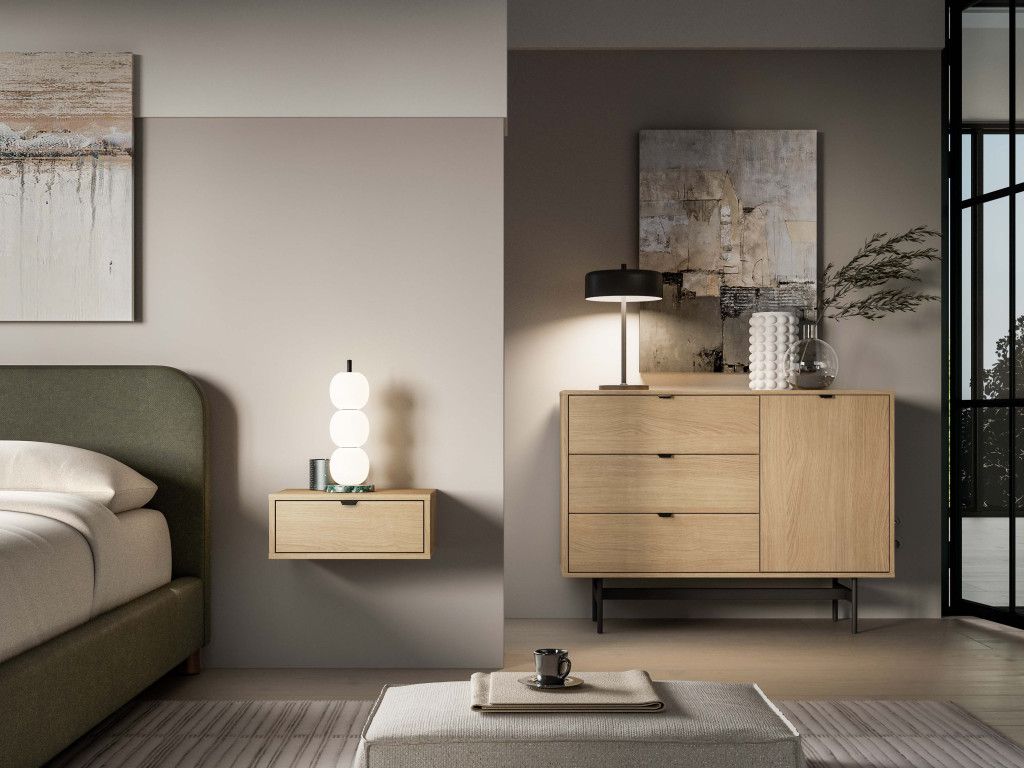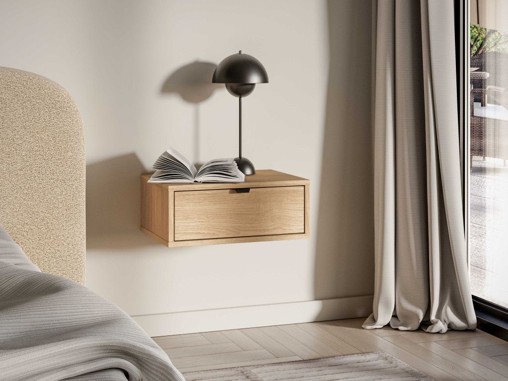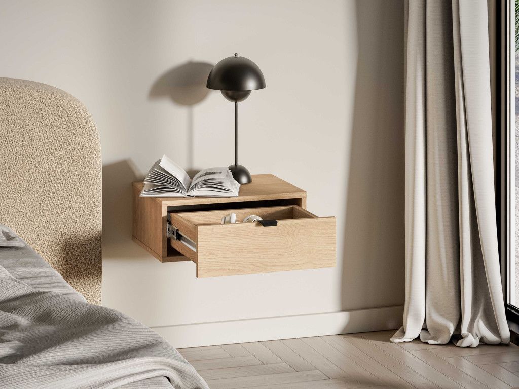 Závesný nočný stolík Reynos 09 je navrhnutý pre jednoduché a praktické využitie v modernej spálni. Ponúka jednu priestrannú zásuvku s plným výsuvom, ideálnu na okuliare, nabíjačky či osobné veci. Montáž na stenu umožňuje nastaviť výšku podľa potreby a zároveň uľahčuje upratovanie pod nábytkom. Minimalistický vzhľad dopĺňa bezúchytkový front, ktorý pôsobí čisto a moderne. Prevedenie v dekore dub mavelie prináša do interiéru prirodzený a útulný charakter.