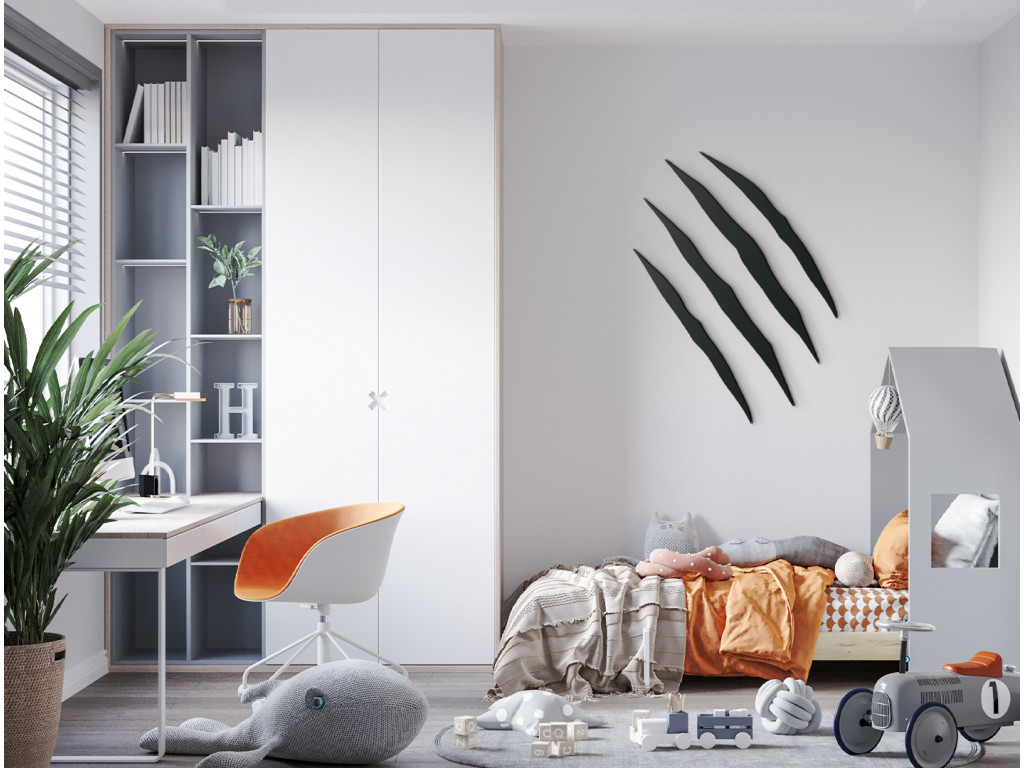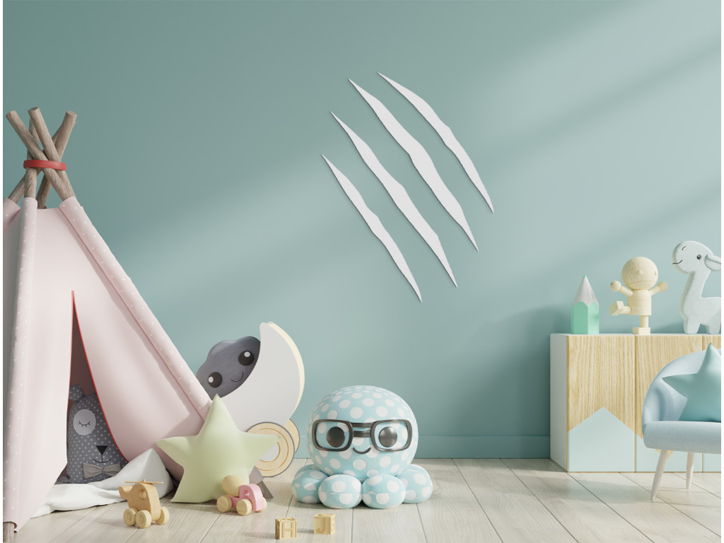 Urobte deťom radosť a vyzdobte im izbičku vyrezávanou dekoráciou v podobe škrabanca od medveďa. Farebný dizajn sa dá ľahko zladiť s celkovým zariadením detskej izby.