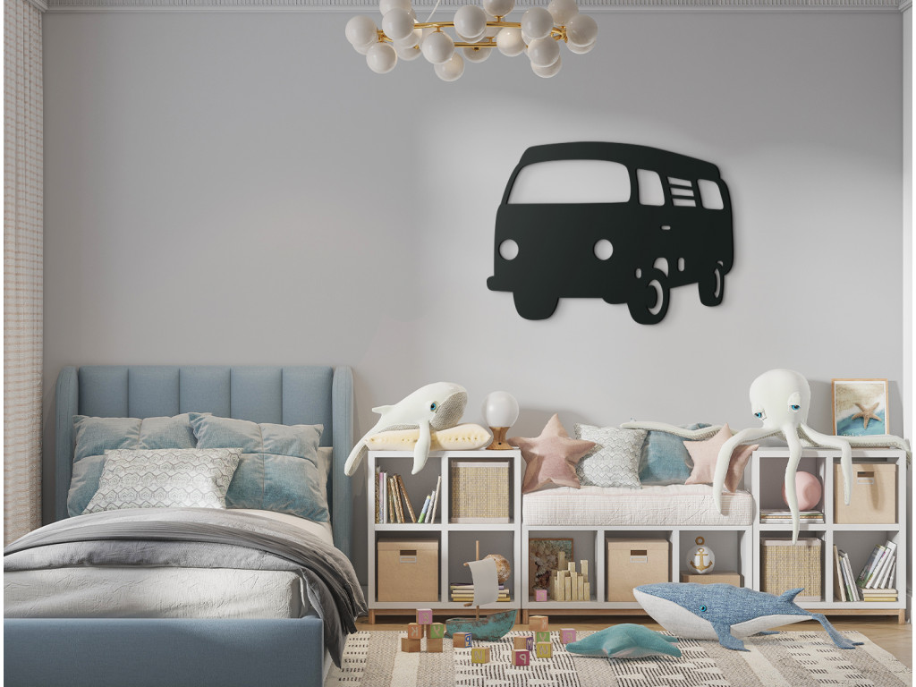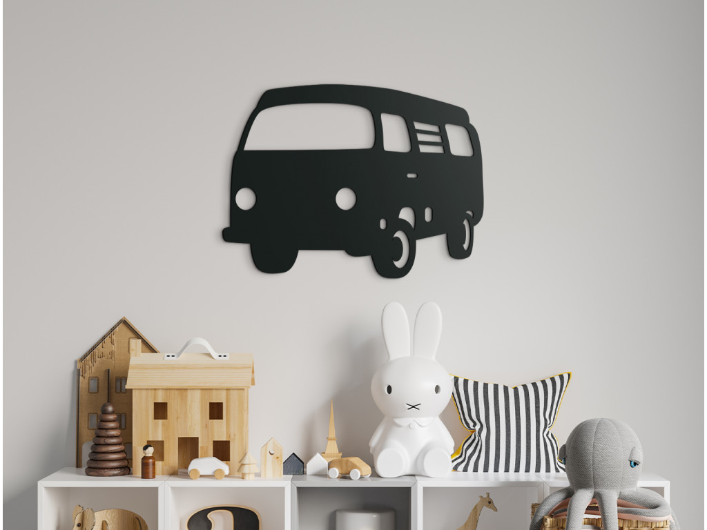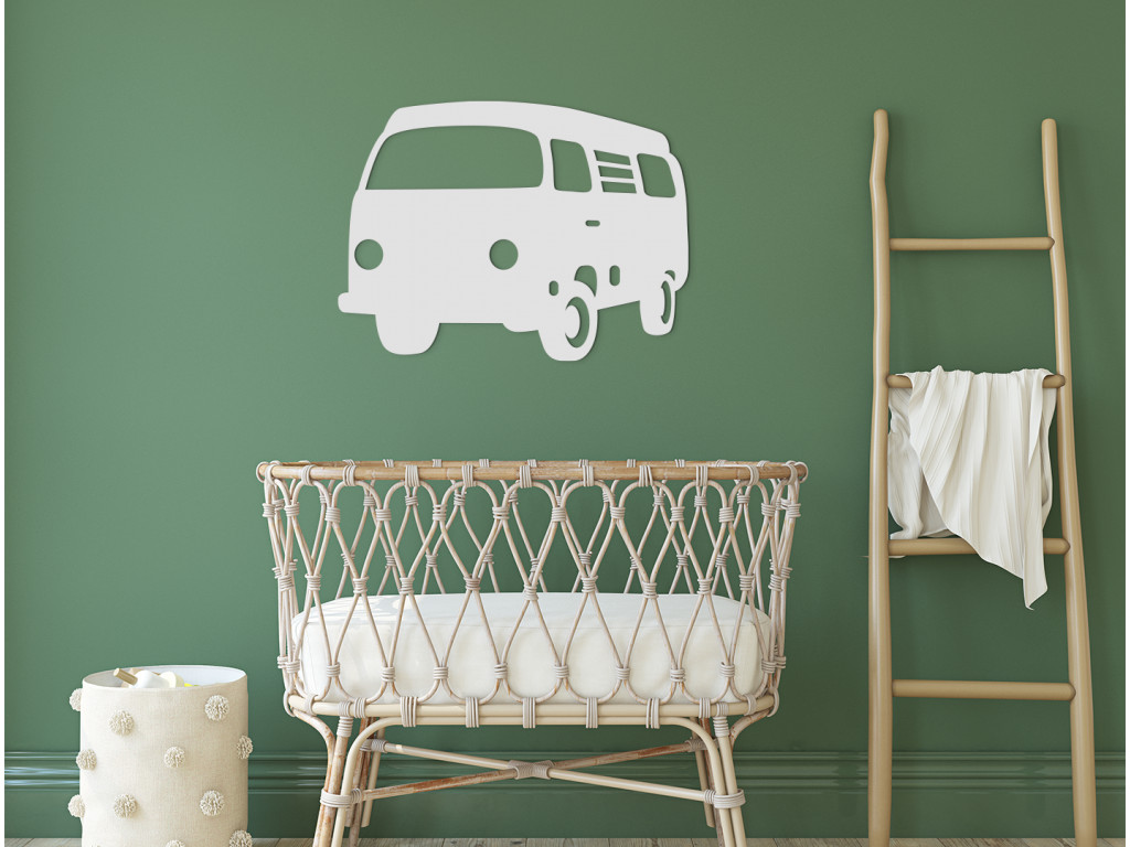 Originálna detská dekorácia na stenu zobrazuje dodávku v retro štýle a je ako stvorená pre všetky deti, ktoré majú radi autíčka. Jej univerzálne vyhotovenie umožňuje nalepenie do detských izieb zariadených v akomkoľvek dizajne.