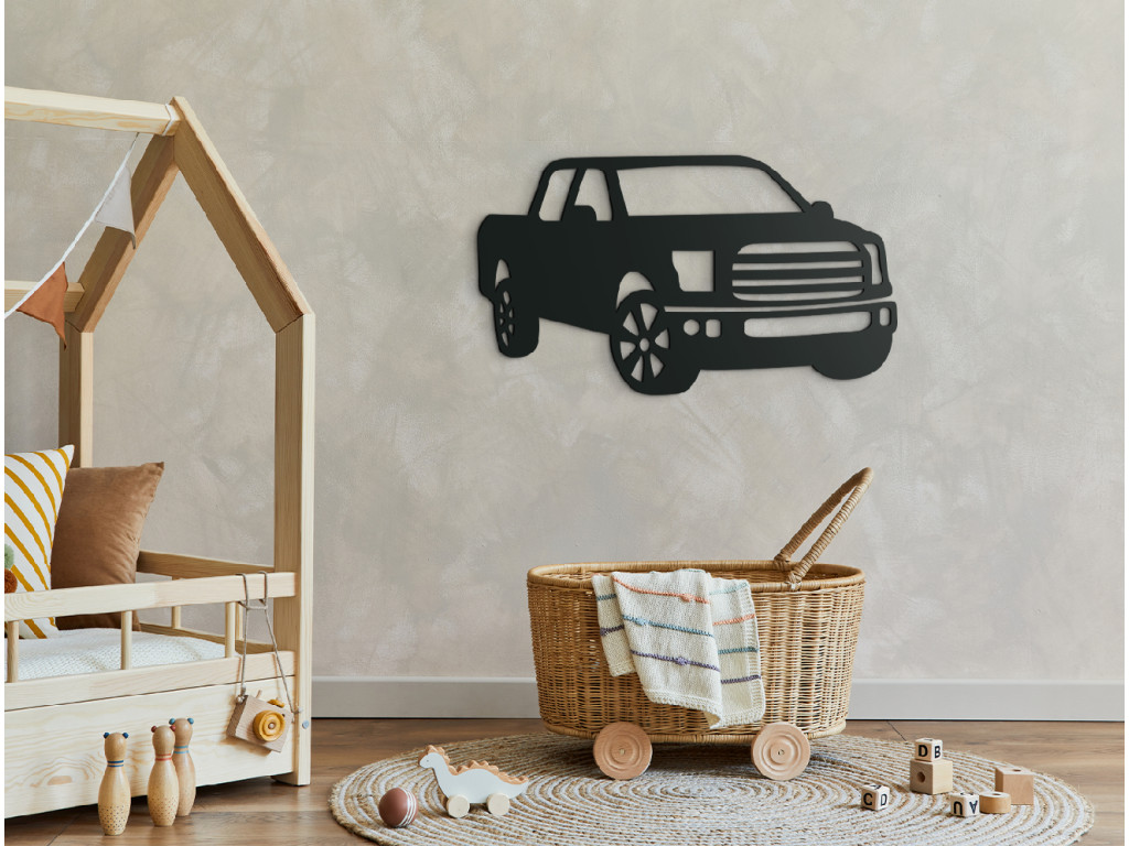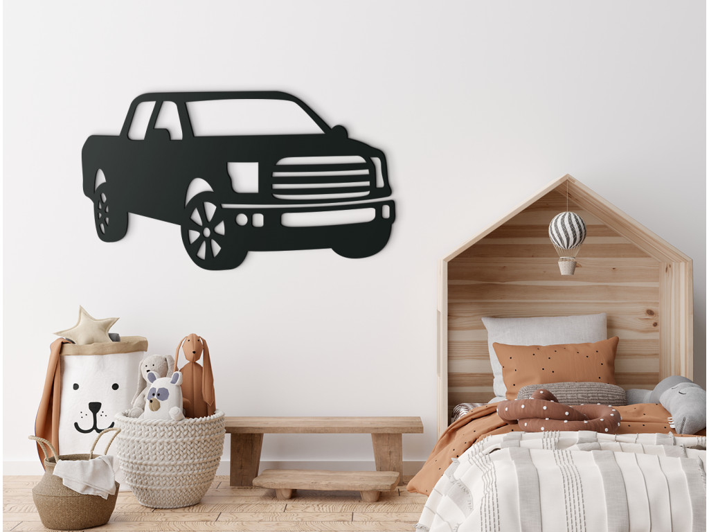 Drevená nálepka na stenu Pick-up sa hodí predovšetkým pre chlapcov. Moderný dizajn je ideálny do štýlových detských izieb, kde bude výborne ladiť s celkovým vybavením.