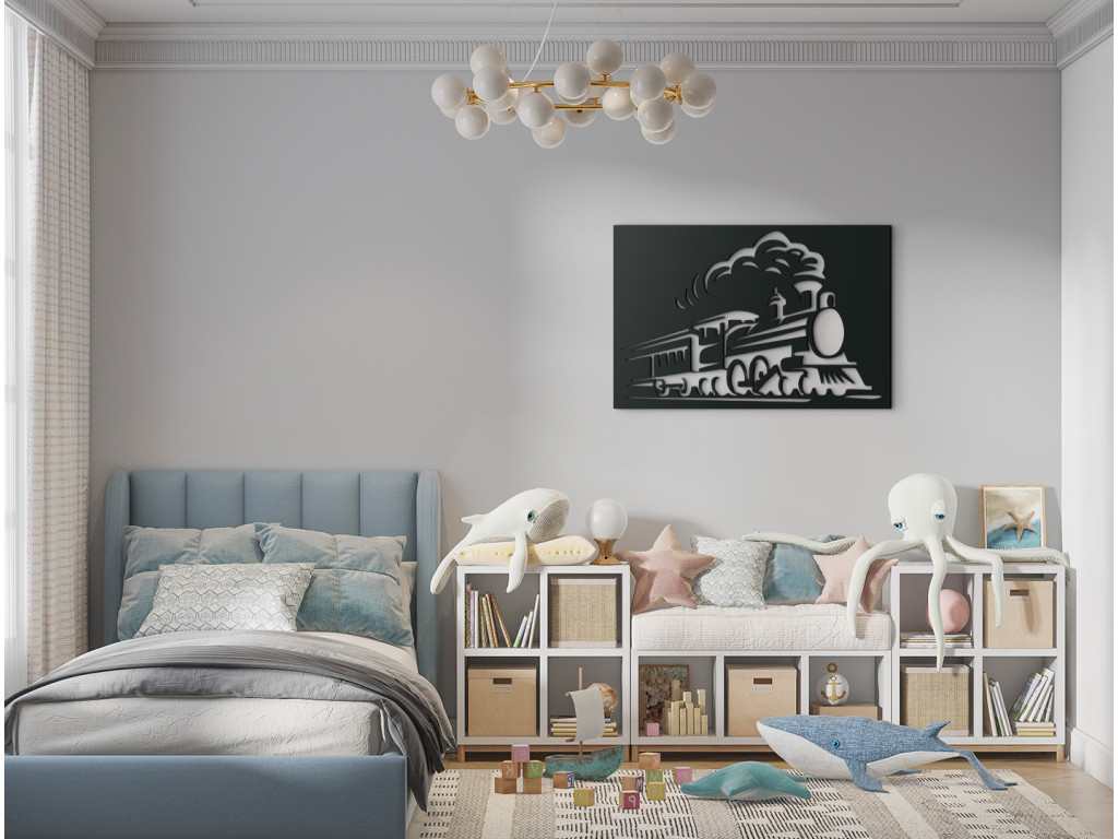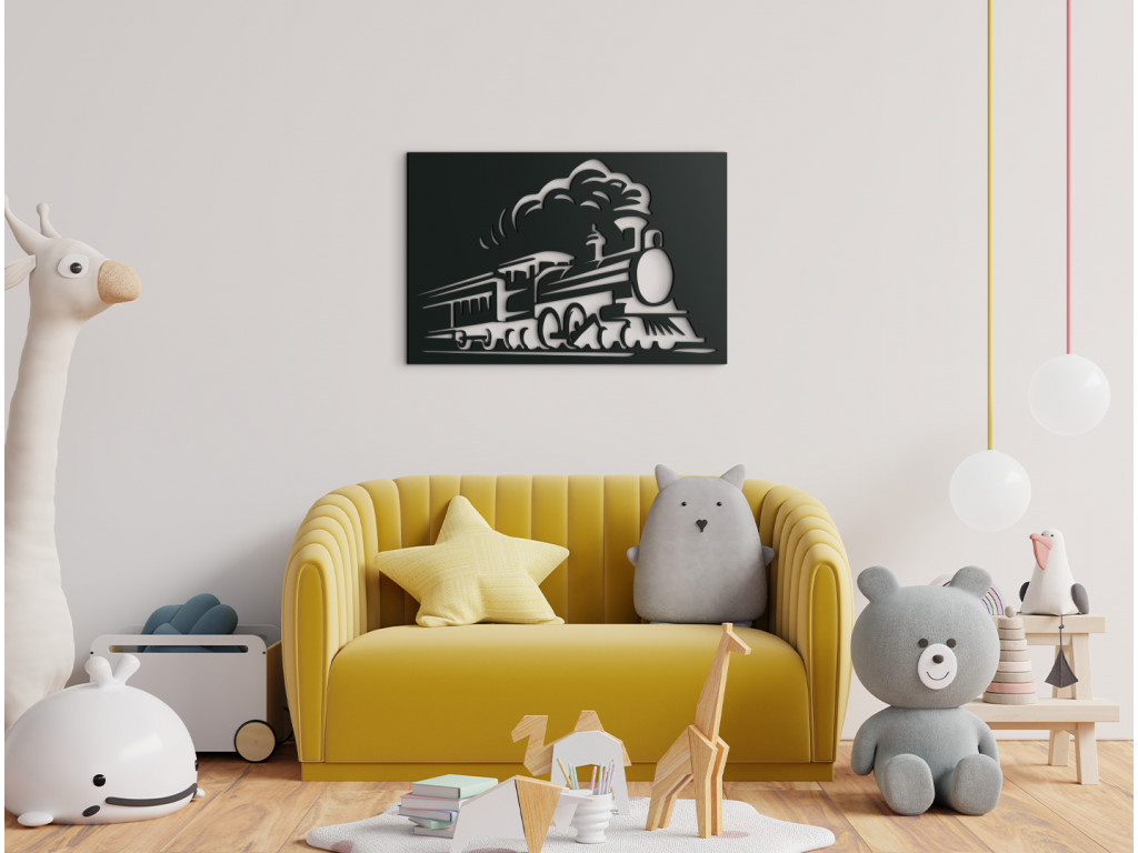 Nálepka na stenu s motívom fučiacej lokomotívy rútiacej sa vpred s kúdolmi pary, ktoré sa nad ňou vinú z komína, poteší každého malého rušňovodiča. Nadčasový dizajn pôsobí veľmi trendovo a efektne zaplní prázdne miesto na stene detskej izbičky.