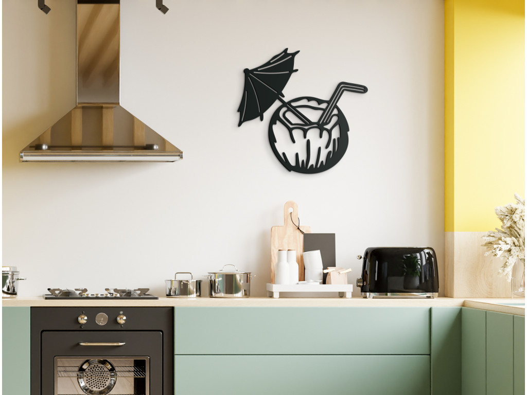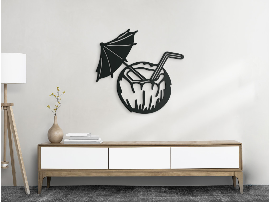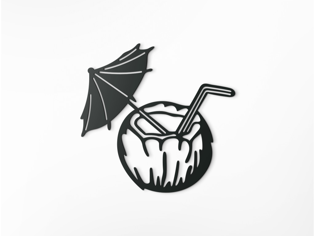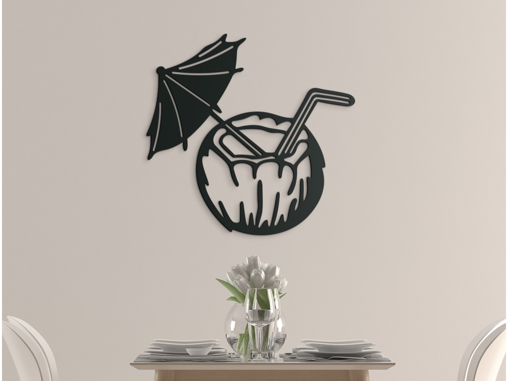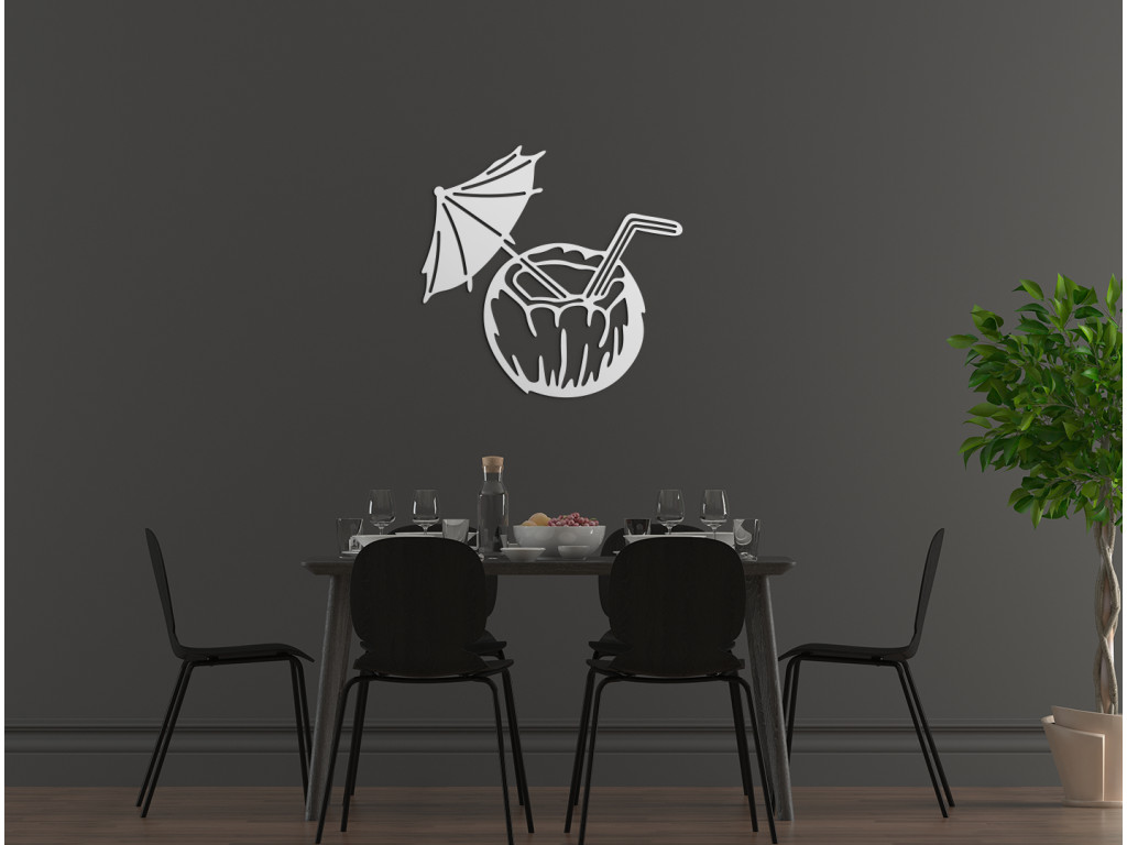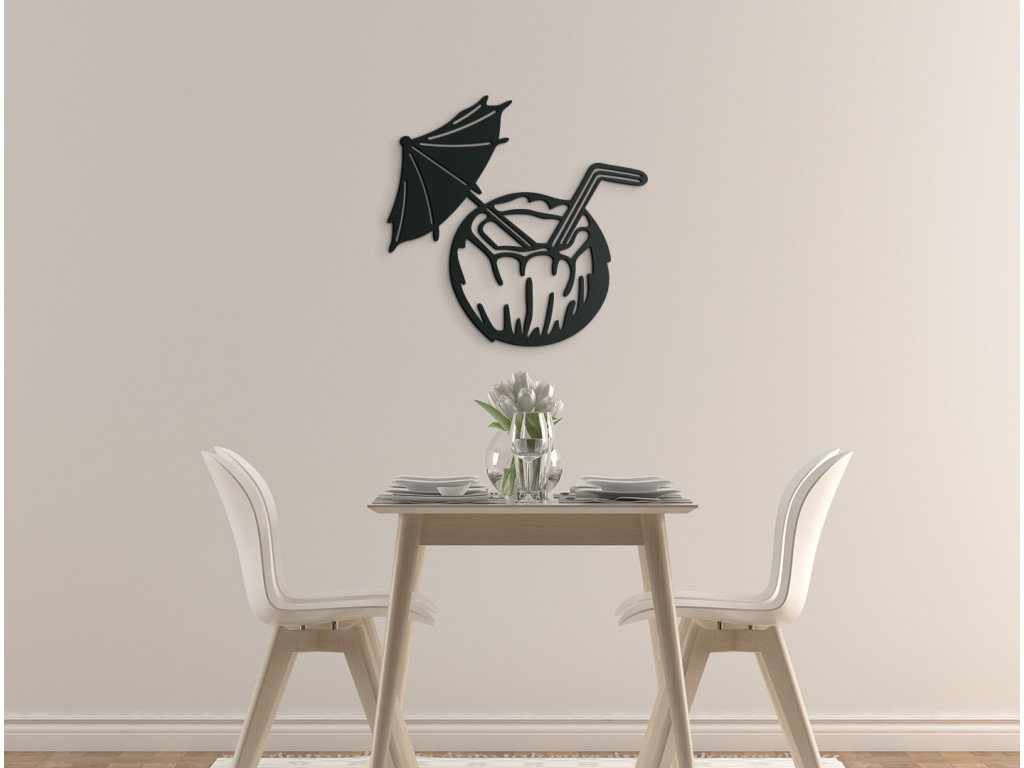Uvoľnenie a pozitívne emócie - presne tieto pocity vás zaplavia pri pohľade na drevenú dekoráciu exotického drinku v kokosovom orechu. Nálepka osviežujúceho nápoja je doplnená o slamku a slnečník, ktoré pre dokonalý efekt exotiky nemôžu chýbať. Vyšperkujte si svoj interiér unikátnym obrazom na stenu s dovolenkovým motívom.