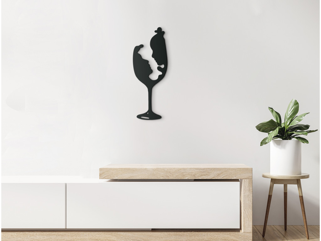 Vneste do svojej domácnosti nádych romantiky a lásky. Decentná drevená nálepka s motívom pohára na stopke, ukrývajúca profil zaľúbenej dámy a pána poteší každú rojčivú dušu.