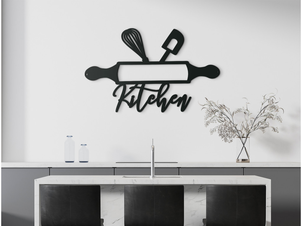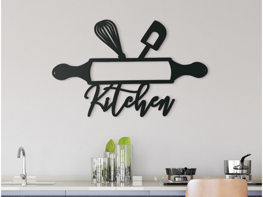 Zvoliť priliehavý obraz do kuchyne nie je vždy jednoduché. Drevená nálepka s motívom kuchynského náčinia však zapasuje do moderného i tradičnejšieho interiéru. Len ťažko by ste našli vhodnejší motív, ako je valček, stierka a metlička na šľahanie, vyšperkované dizajnovým nápisom Kitchen. Efektne vyplní prázdne miesto a zútulní celú miestnosť.