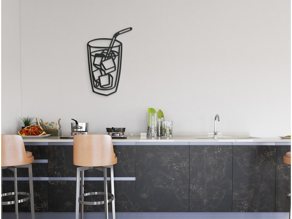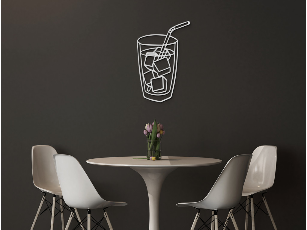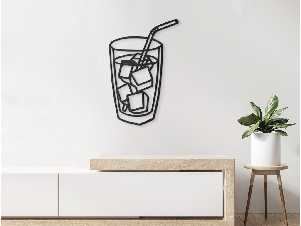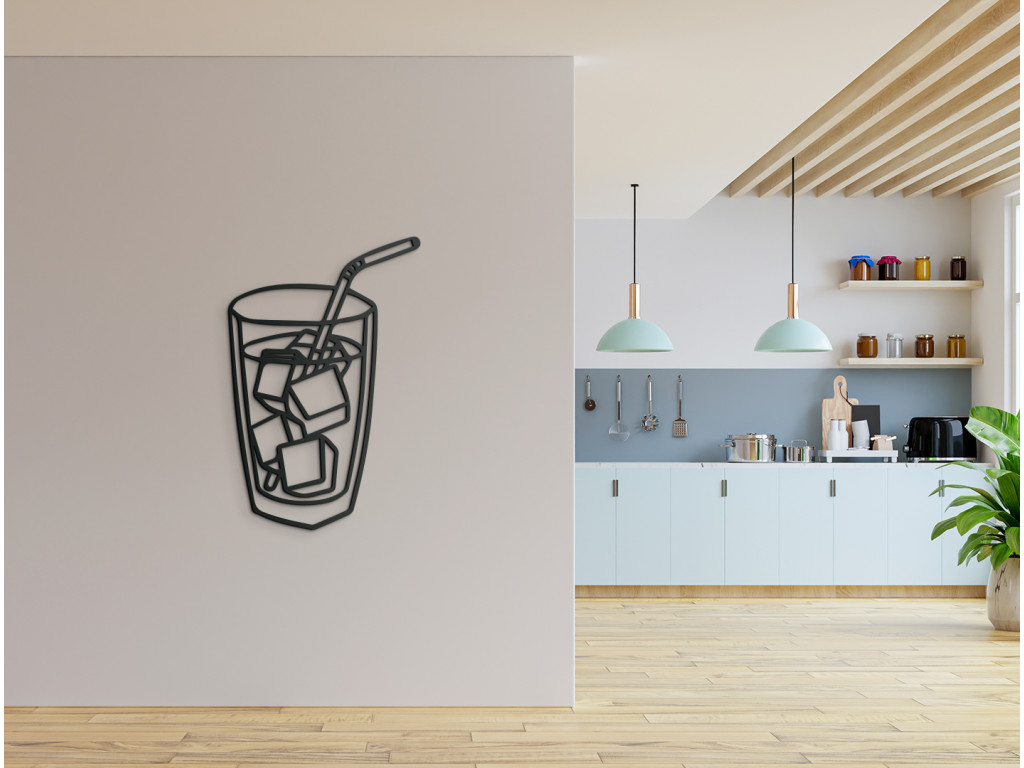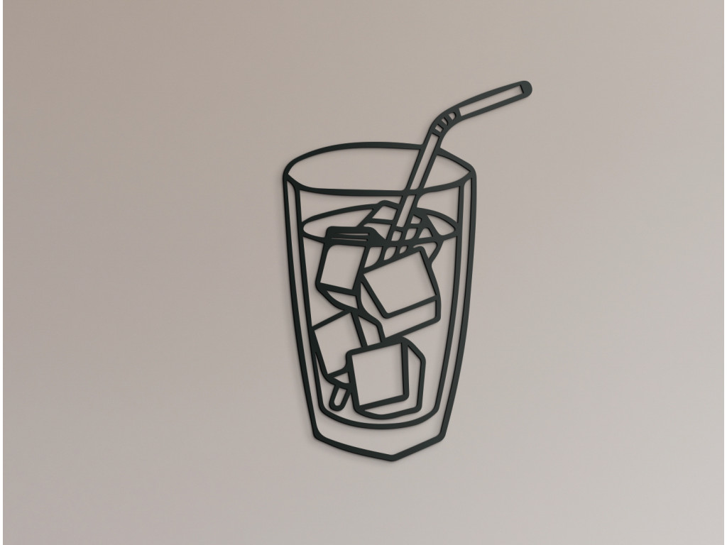 Osviežte sa pohľadom na drevenú dekoráciu na stenu znázorňujúcu pohár naplnený ľadovým nápojom. Zobrazené kocky ľadu a slamka evokujú príjemnú úľavu najmä počas horúcich dní. Hravý a zároveň minimalistický dizajn je ako stvorený do kuchyne, jedálne, ale napríklad aj do detskej či študentskej izby. Dokonca sa výborne hodí aj do priestorov ponúkajúcich rýchle občerstvenie či do barov.