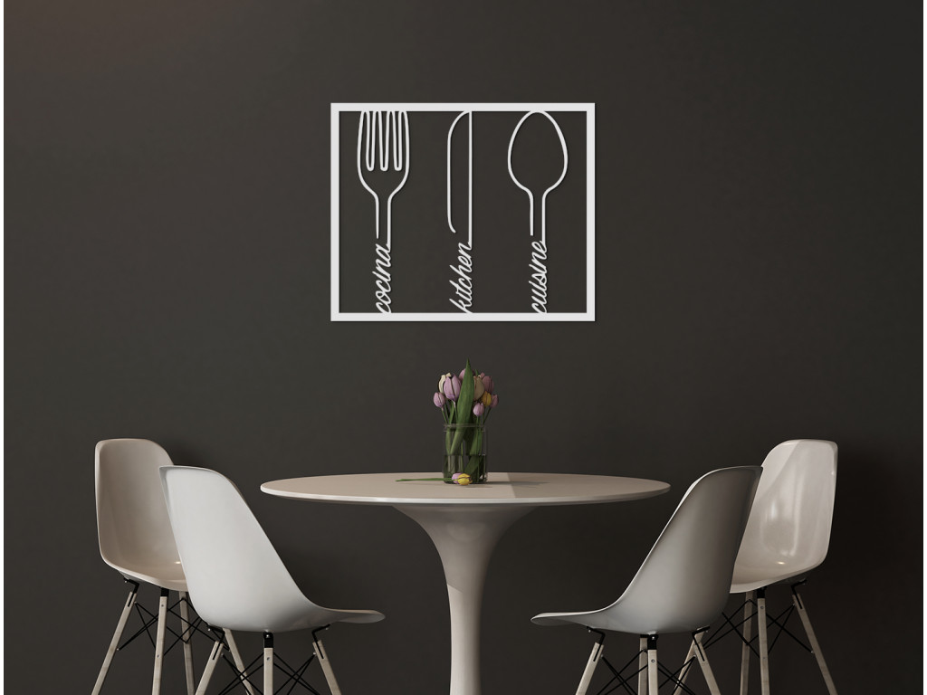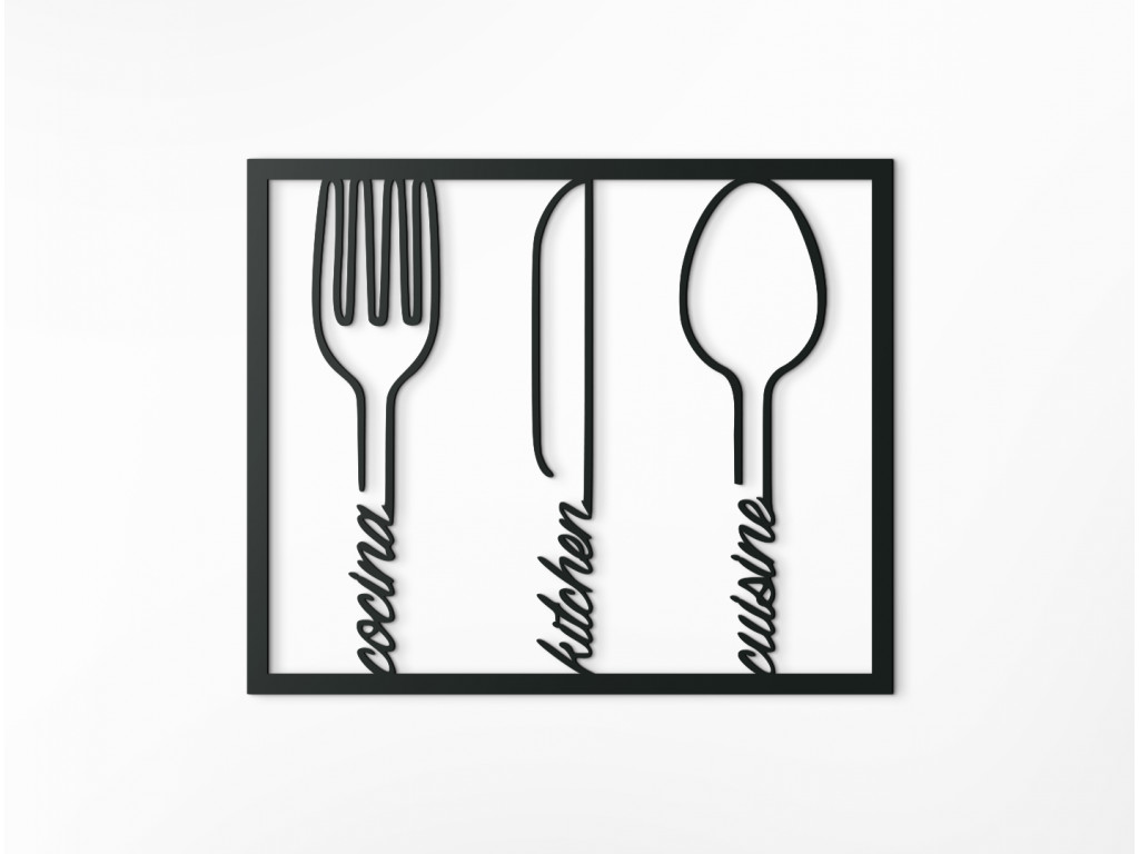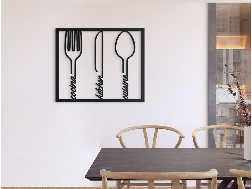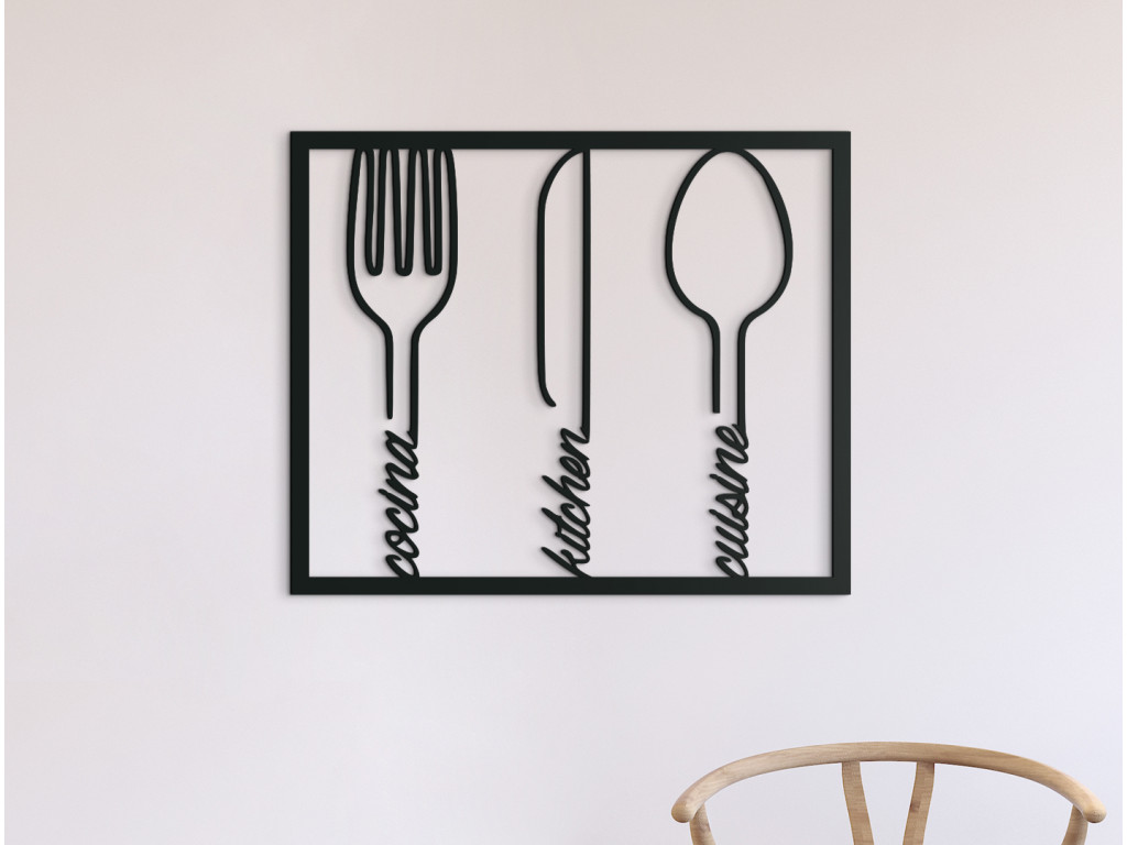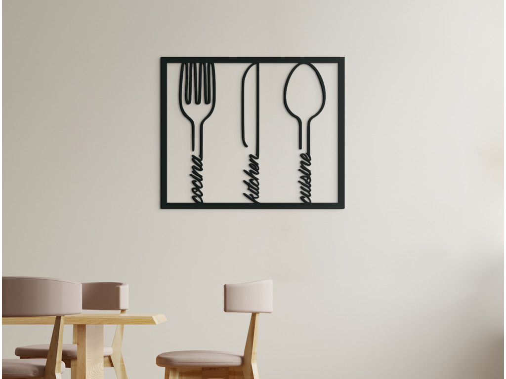 Drevená dekorácia na stenu zobrazujúca príbor s jednoduchým orámovaním je pri zariaďovaní kuchyne či jedálne jednoznačne zásahom do čierneho. Zaujme tiež ako netradičný darček pre priateľov či známych.