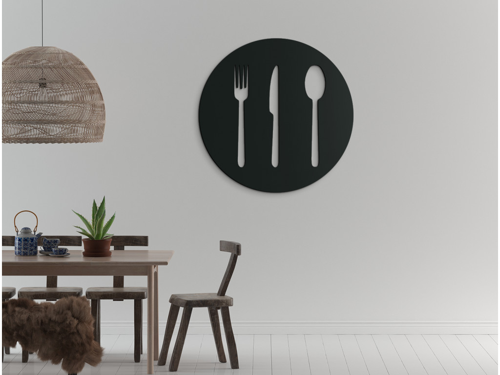 Ak hľadáte vhodnú tematickú dekoráciu do kuchyne, jedálne alebo dokonca reštaurácie, potom je pre vás okrúhly drevený obraz Príbor ako stvorený. Motív znázorňuje vidličku, nôž a lyžicu, čo ho priam predurčuje na zavesenie na stenu nad jedálenský stôl či kuchynskú linku.