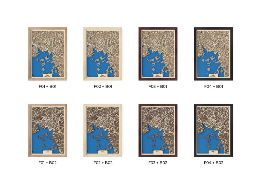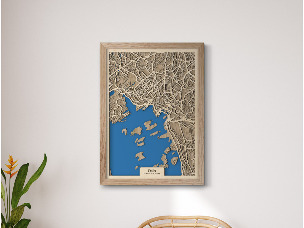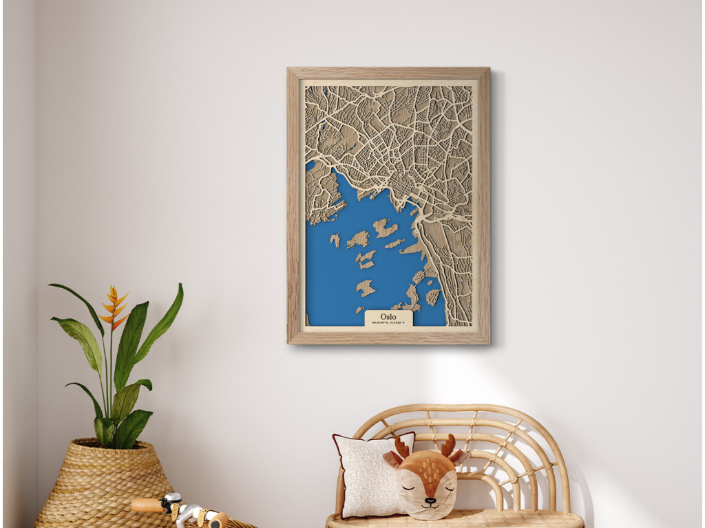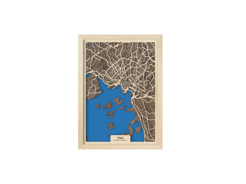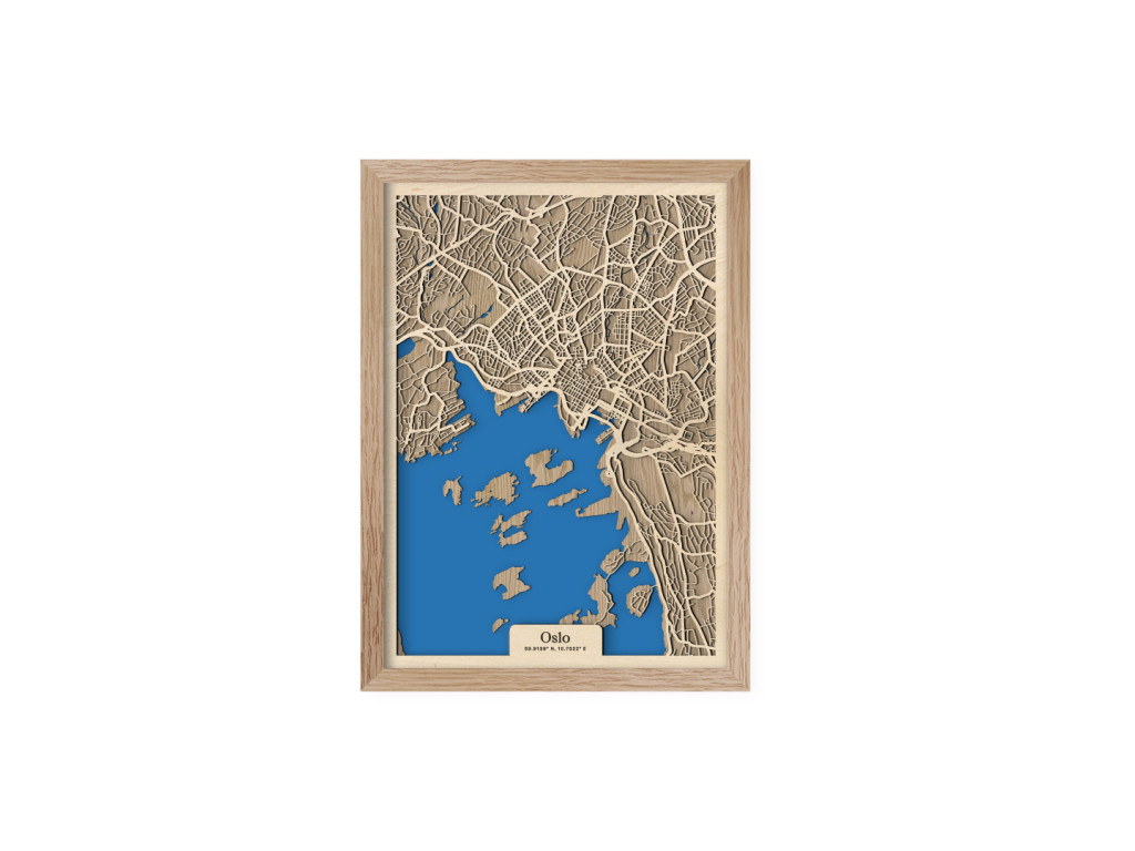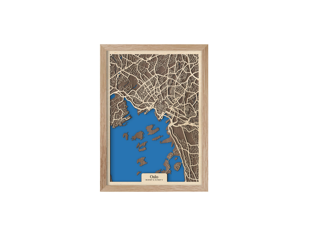 Mesto ležiace na fjorde Severného mora či zelená perla. Aj tak prezývajú hlavné mesto Nórska, ktorého krásy zachytávame na mape z kolekcie drevko CITY. V našej zbierke svetových metropol tak nechýba ani drevený obraz Oslo a jeho štvrte Sentrum, Frogner, Skøyen, Majorstuen, St. Hanshaugen, Sagene, Grünerløkka, Gamle Oslo a Nordstrand. Nezabudli sme ani na malé južné ostrovčeky, ktoré dotvárajú 3D detaily mapy. Oslo môže mať vo farebnej kombinácii rámu a podkladu podľa vlastného vkusu.