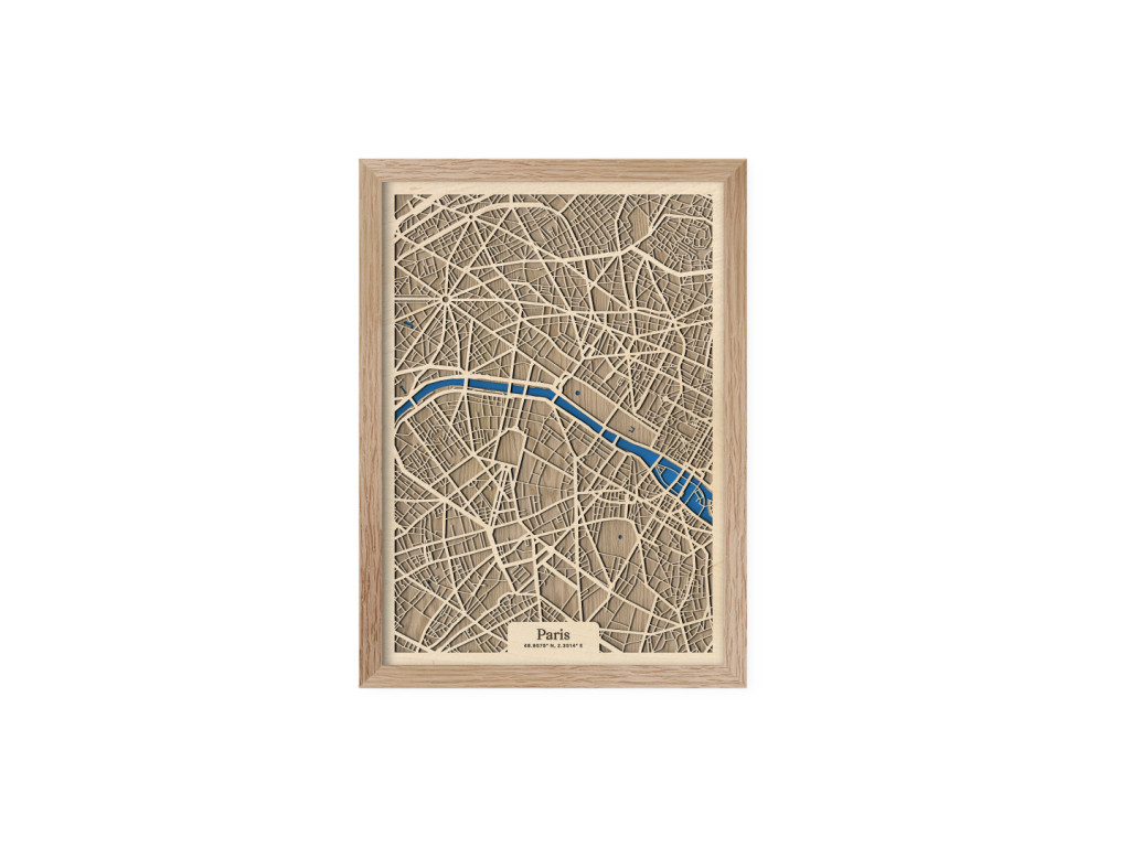 Très magnifique! Tak pôsobí mapa Paríža z kolekcie drevko CITY, ktorá vystavuje na obdiv ulice hlavného mesta Francúzska. V drevenom ráme nájdete všetky centrálne obvody od hornej štvrte Pigalle, Montmartre a kruhového objazdu pri Arc de Tromphe cez Champs-Élysées, námestie Place de la Concorde, modrú rieku Seinu so slávnymi mostami, komplex Les Invalides, Eiffelovu vežu až po Luxemburské záhrady, Panthéon a katedrálu Notre-Dame. Navyše, Mesto lásky pre vás zarámujeme do farieb podľa vlastných predstáv.