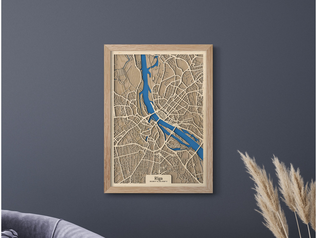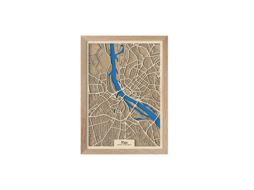 Hlavné mesto Lotyšska a najväčšie mesto celého Pobaltia leží na ústí rieky Daugavy, ktorá zdobí aj drevený obraz Riga. Rámujeme v ňom najmä centrum, ktorého historická časť je zaradená do dedičstva UNESCO. Ak sú Vám ulice štvrtí od Spilve, Sarkandaugava až po Salas a Maskavas Forštate dôverne známe, 3D mapa Riga z kolekcie drevko CITY vás zaručene poteší. Samozrejme, veľkostne aj farebne dekoráciu prisposobíme vášmu vkusu podľa výberu nižšie.