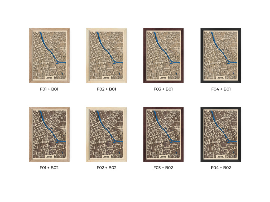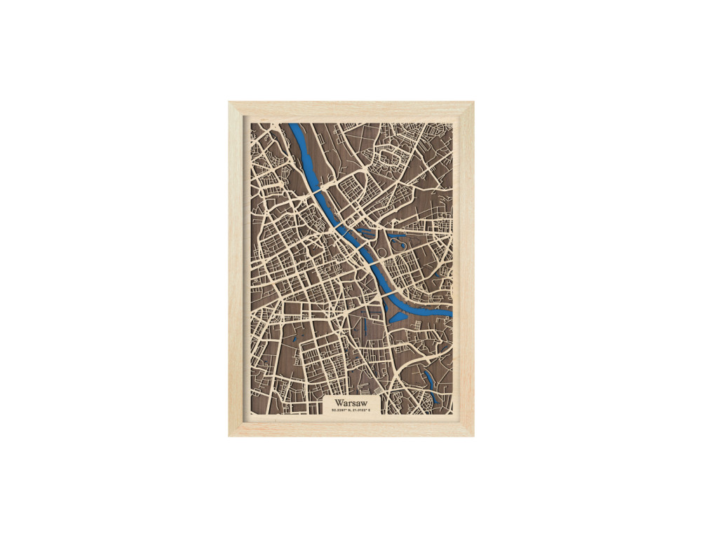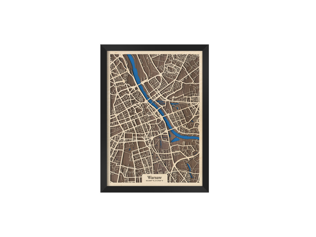 Mesto, ktoré povstalo z popola môžete mať vystavené v drevenej 3D podobe. Ulice hlavného a najväčšieho mesta Poľska vyzerajú zaujímavo nielen naživo, ale aj pri pohľade zhora. Mapa Varšava z kolekcie drevko CITY rámuje mestské časti od Praga-Północ, Praga-Południe, Żoliborz, Śródmieście aj Mokotów. Navyše, vďaka výberu parametrov nižšie môžete mať obraz Varšavy v dizajne ušitom na mieru.