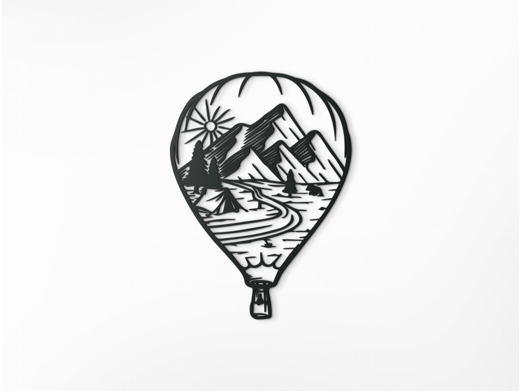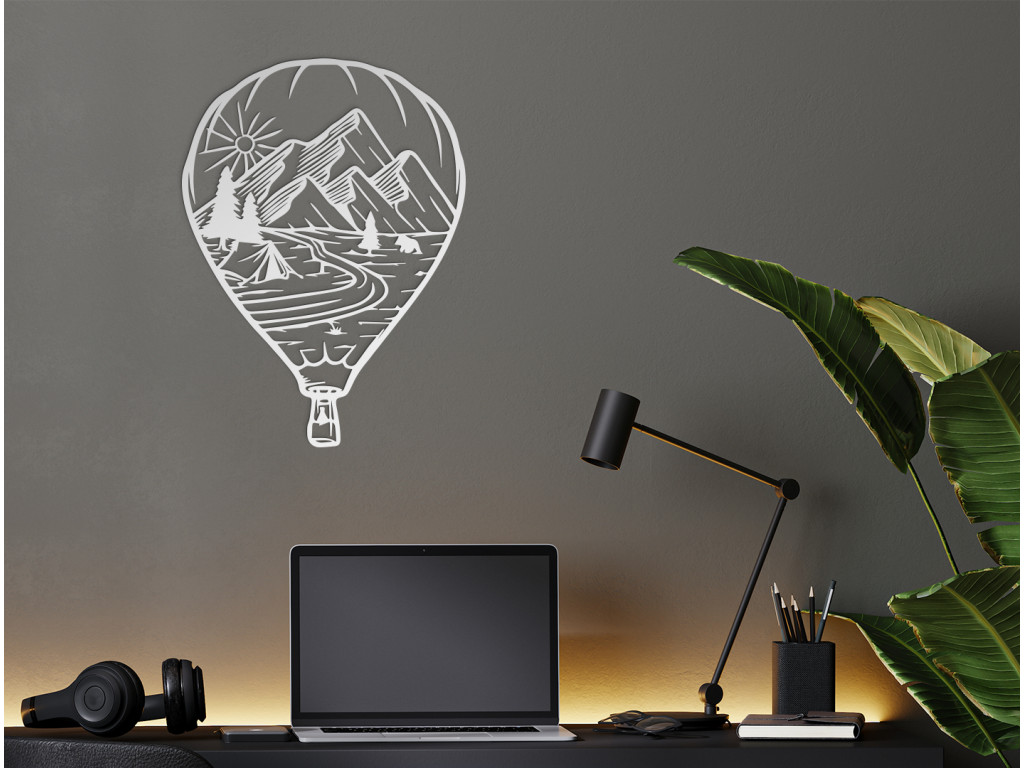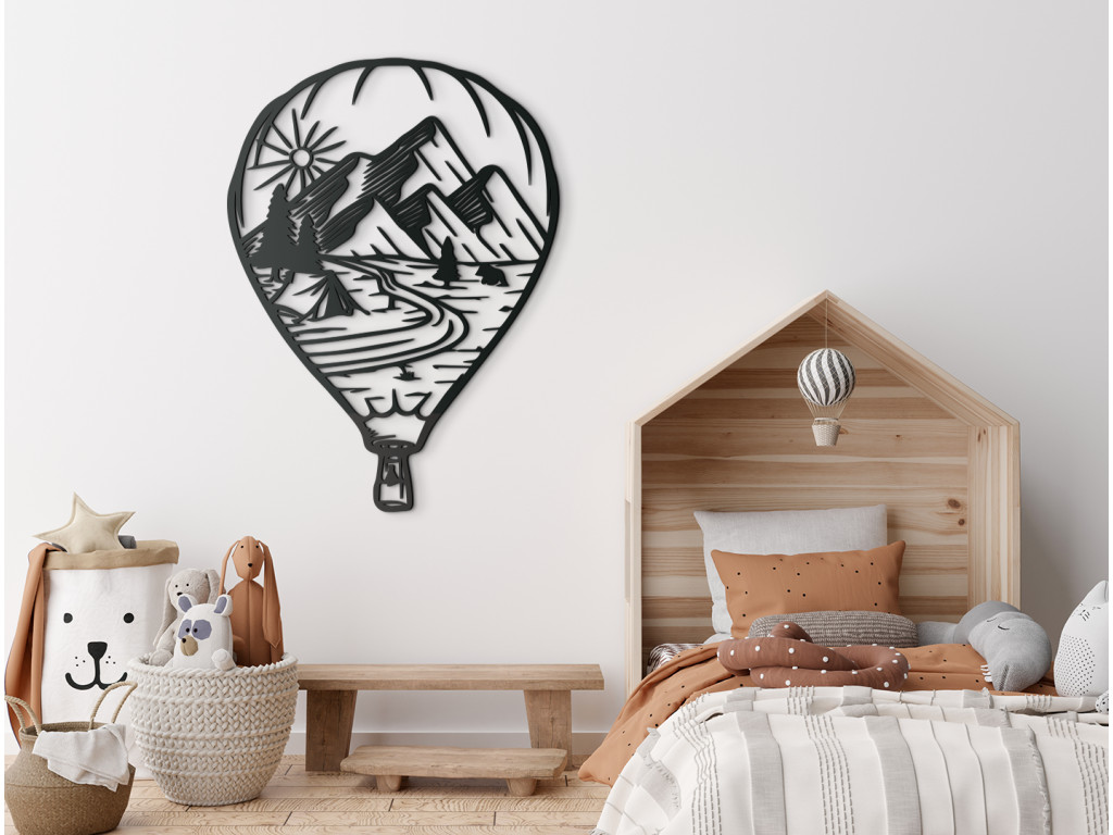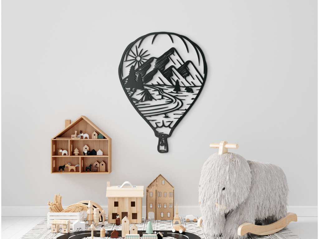 Zariaďte si izbu podľa svojho vkusu. Drevená dekorácia Lietajúci balón s prírodou pritiahne pozornosť malých aj veľkých. Prvé čo vám padne do oka je tvar lietajúceho balóna, ktorý v sebe nesie rozprávkový výhľad. Je v ňom vyobrazený východ slnka nad štítmi hôr. Pod horami sa nachádza les a v ňom stan pri rieke. Drevený obraz Lietajúci balón s prírodou sa bude hodiť do obývačky aj detskej izby.