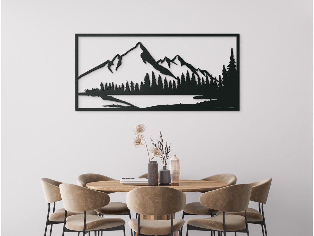 Pokiaľ si zariaďujete interiér v modernom štýle a hľadáte ideálne doplnky, máme pre vás jeden tip - vyrezávaný obraz z dreva Vrchy s jazerom. Na obraze sa vynímajú veľké hory, štíty a skaliská. Jednoduchý dizajn sa bude hodiť do všetkých miestností v dome. Vybrať si môžete z viacerých odtieňov a rozmerov.