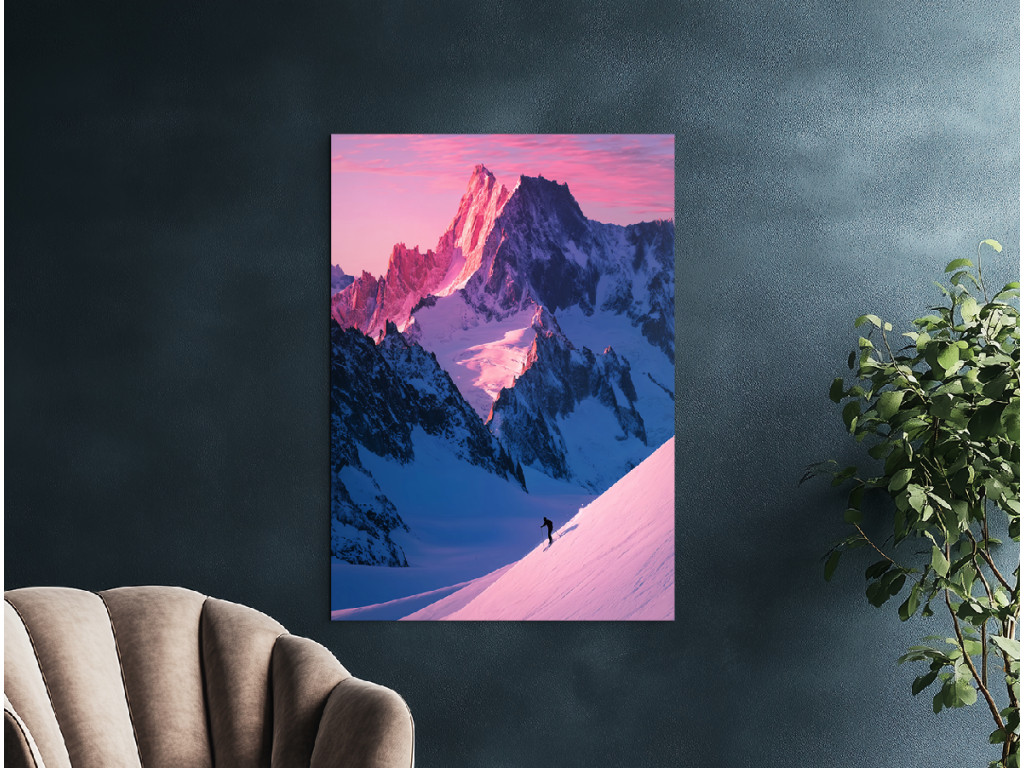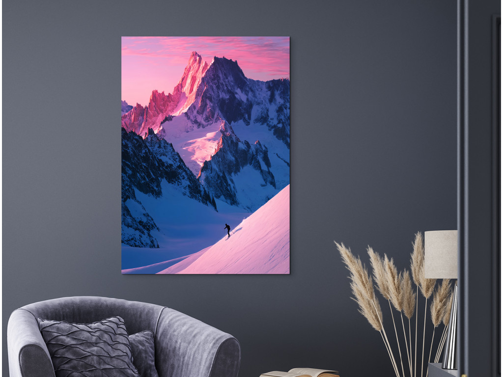 Farebný obraz Sloboda v Alpách pri východe slnka zachytáva zasnežené horské štíty zaliate prvými lúčmi ranného svetla, ktoré vytvárajú jedinečnú zimnú atmosféru. Súčasťou kompozície je aj lyžiar, ktorý dodáva fotografii dynamiku a pocit slobody pohybu v horách. Umelecká fotografia prenáša do interiéru ducha cestovania, dobrodružstva a čerstvého horského vzduchu. Vďaka kvalitnej UV tlači vyniknú jemné farebné prechody aj detaily snehu, pričom obraz sa ideálne hodí do moderného bytu, obývačky alebo pracovne.
