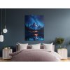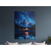 Obraz Chata pod horami zachytáva nočnú horskú krajinu s jazerom a malou chatou, z ktorej teplé svetlo vytvára kontrast voči tmavej scenérii. Pokojnú atmosféru dotvára odraz hôr a oblohy na hladine jazera, zatiaľ čo hviezdami posiata obloha dodáva celej scéne magický pokoj.