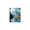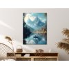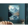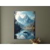 Obraz zachytáva malebnú horskú krajinu s pokojným jazerom a osamelým člnom, ktorý pôsobí ako symbol ticha a vnútorného rozjímania. Zasnežené vrcholy hôr sa zrkadlia na hladine, zatiaľ čo farebné jesenné stromy dodávajú scéne teplý, melancholický nádych. Obraz vyžaruje pocit samoty, pokoja a spojenia s prírodou.