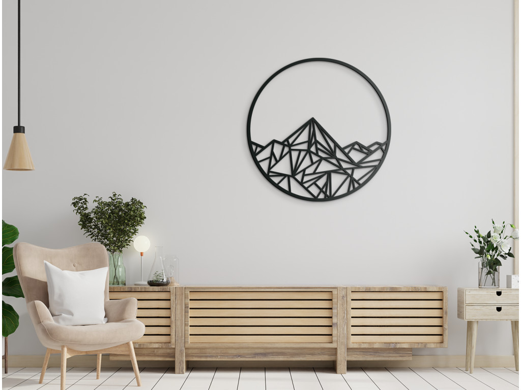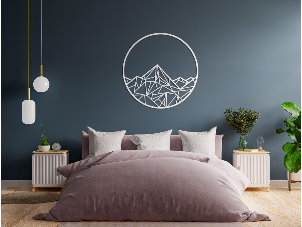 Čistý, elegantný a jednoduchý. Taký je moderný okrúhly obraz Štít. Obraz je vyrobený v minimalistickom štýle a vhodný do všetkých priestorov. Zvýrazní stenu v študentskej izbe, spálni, predsieni aj chodbe. Nachádzajú sa na ňom hory vyskladané z geometrických tvarov. Celý obraz je vložený do okrúhleho rámu.