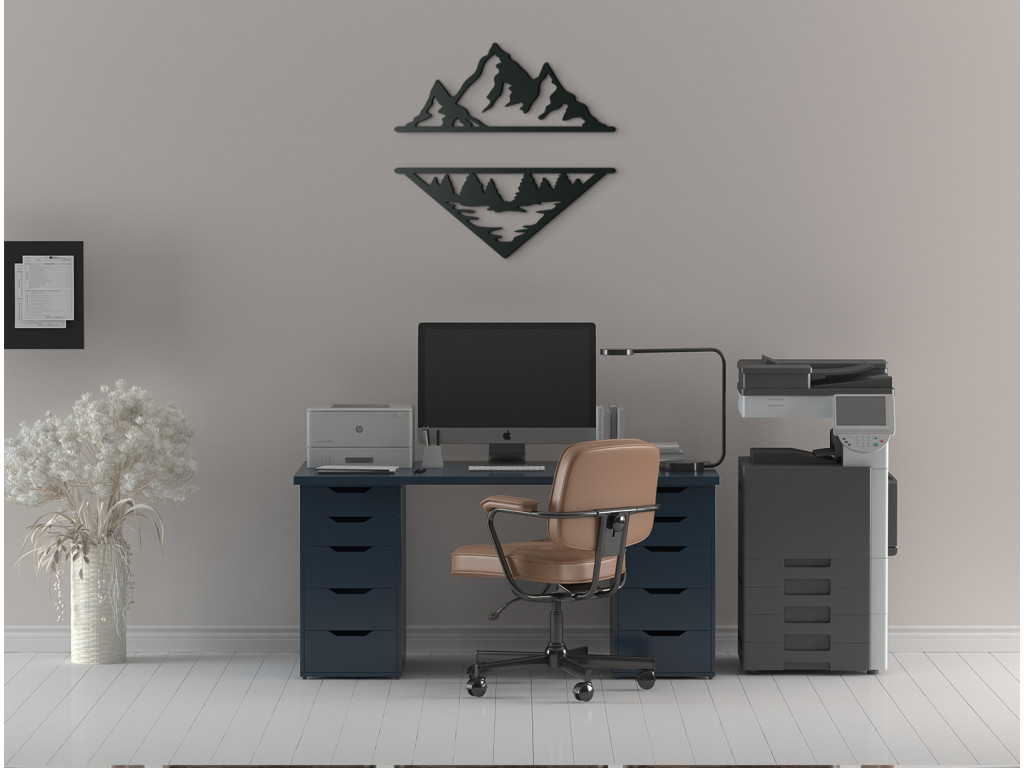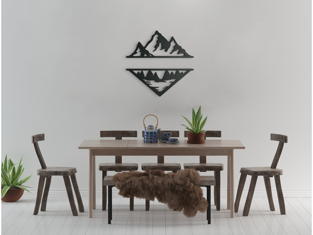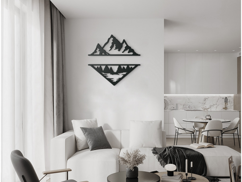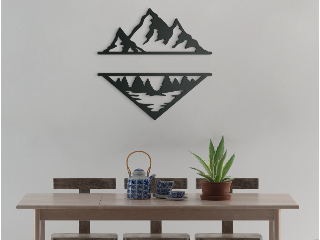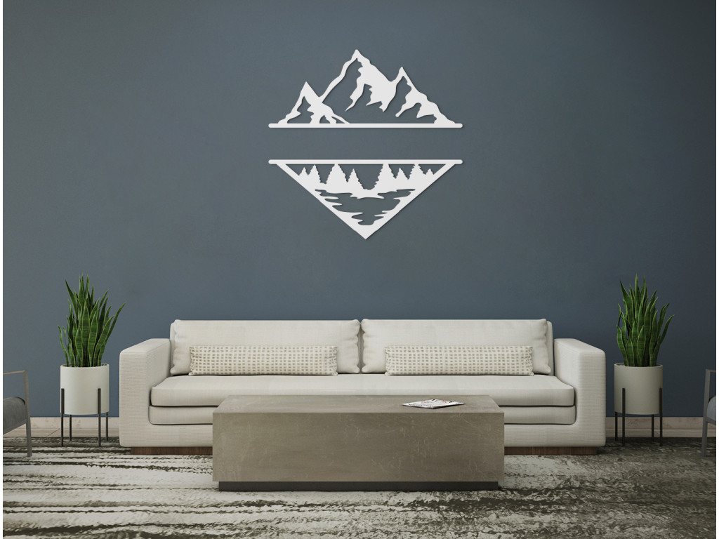 Pre milovníkov moderných dekorácií, hôr a vášnivých turistov máme obraz vykresľujúci odraz hôr v jazere spolu s lesom. Minimalistický obraz z dreva je výborným doplnkom do moderných priestorov aj klasických interiérov. Moderné hory vyniknú nad gaučom, komodou aj kreslom. Vyrábame s láskou priamo v drevku.