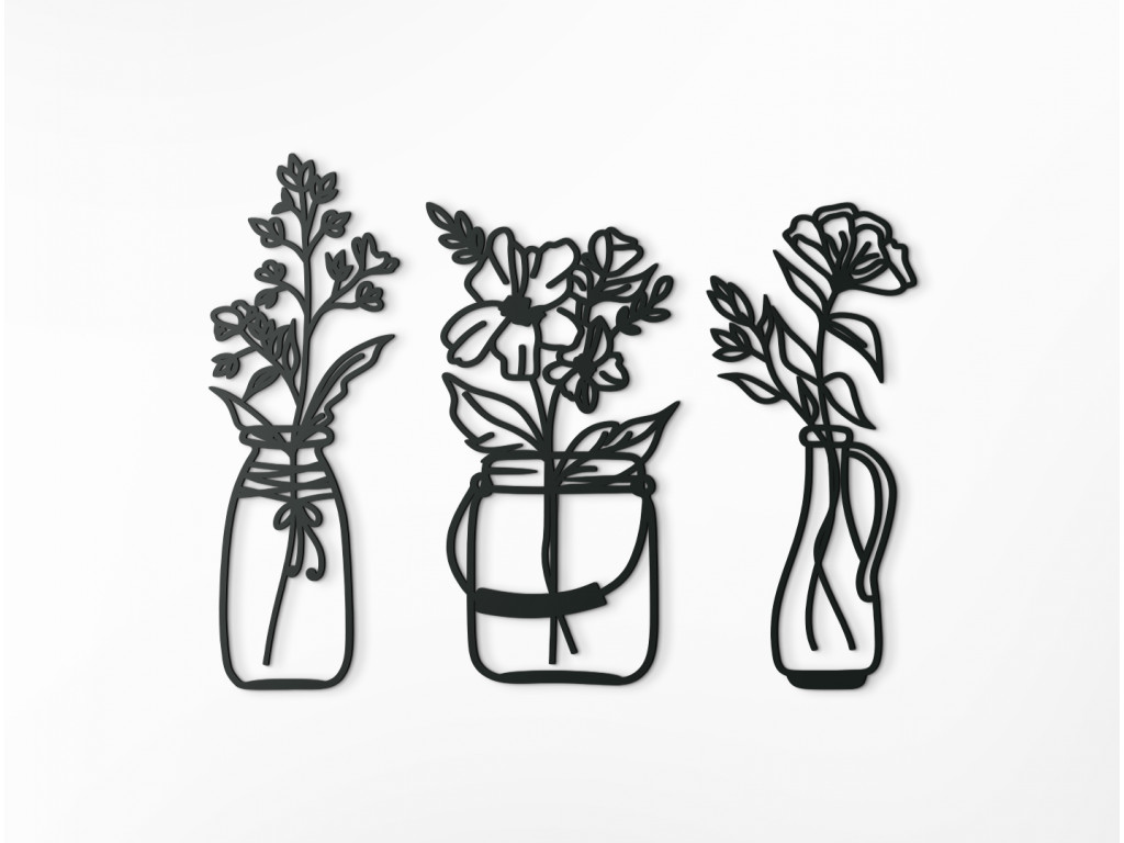 Skrášlite interiér elegantnými kvetmi vo váze. Pokiaľ nebudete mať doma tie živé, ozdobu vám budú robiť drevené kvety. Moderná dekorácia sa skladá z 3 dielov. Každá váza ma iný tvar, preto na stene obraz vynikne. Dekorácia je vhodná do jedálne, kuchyne, chodby aj obývačky.