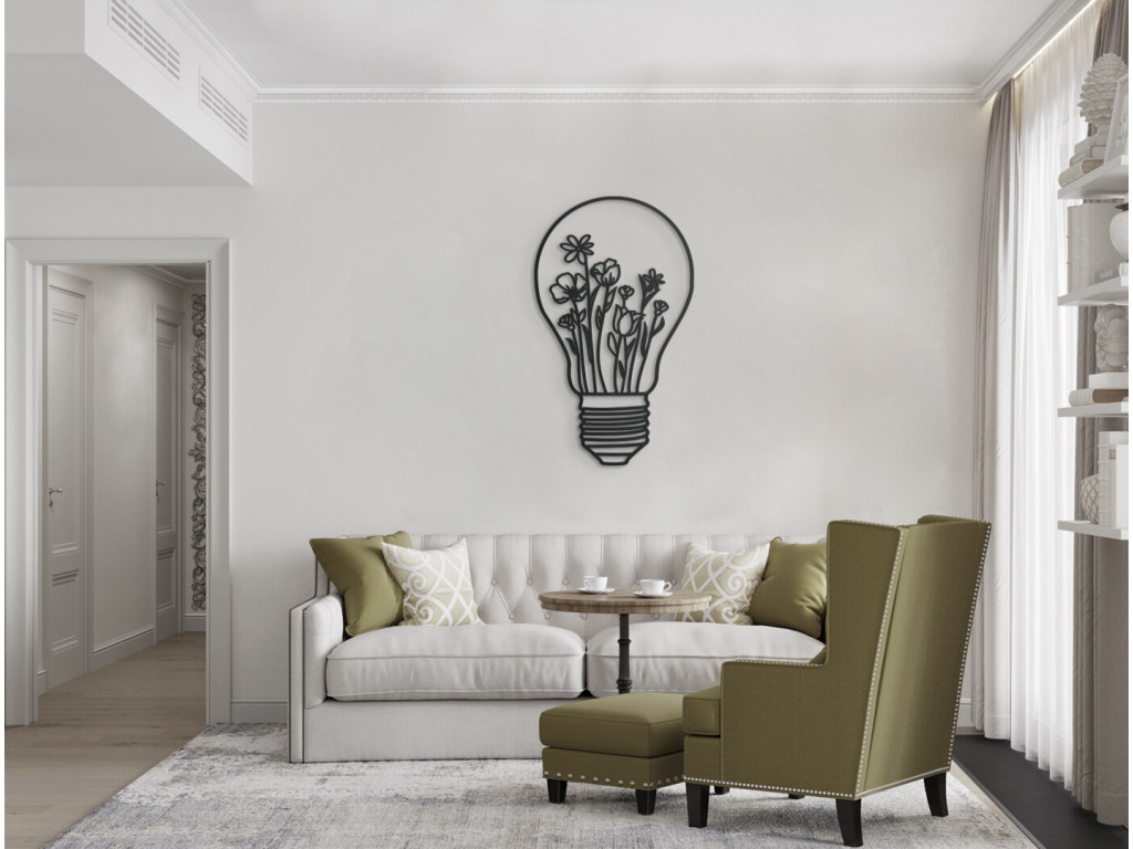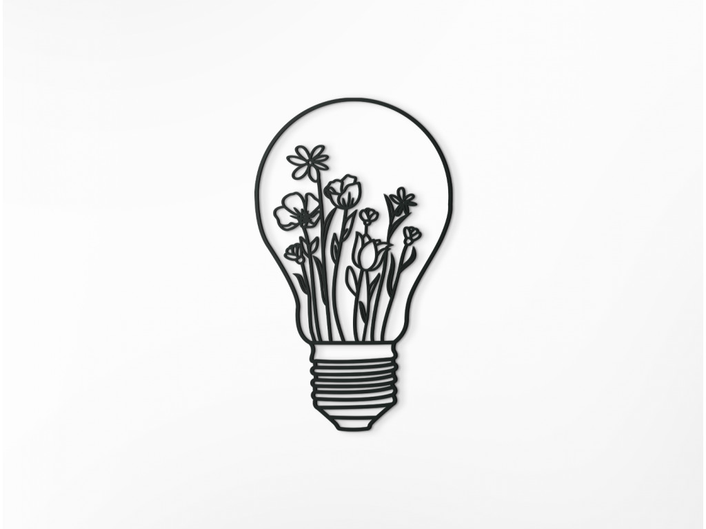 Táto atypická nálepka vytvorí v miestnosti príjemnú atmosféru. Lúčne kvety sa v tomto prípade nenachádzajú v obyčajnom ráme. Sú vysadené v žiarovke, ktorá nálepke pridáva na jedinečnosti. Žiarovku s kvetmi môžete zavesiť do obývačky, spálne, kuchyne aj chodby. Nálepka je tiež ideálnym darčekom pre milovníčku kvetov.