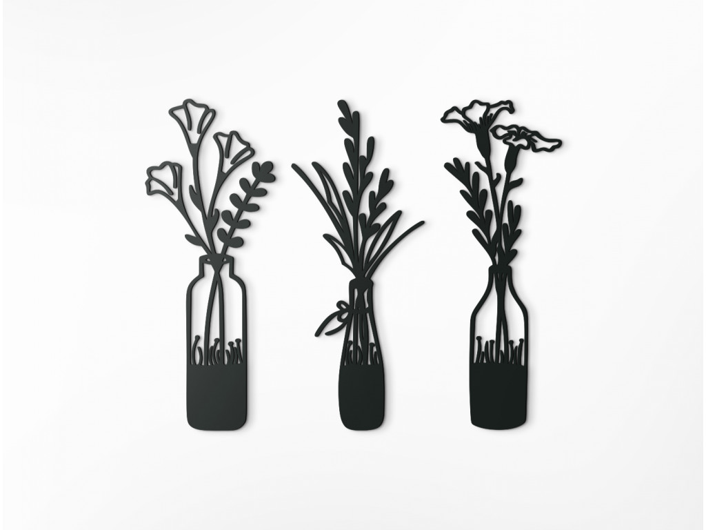 Skrášlite interiér modernými kvetmi vo váze. Pokiaľ nebudete mať doma tie živé, ozdobou vám budú drevené kvety. Moderná dekorácia sa skladá z 3 dielov. V prvej váze sú tulipány, druhá váza vykresľuje poľné kvety a v tretej žiaria ľalie. Každá váza ma iný tvar, preto na stene obraz vynikne. Dekorácia je vhodná do jedálne, kuchyne, chodby aj obývačky.