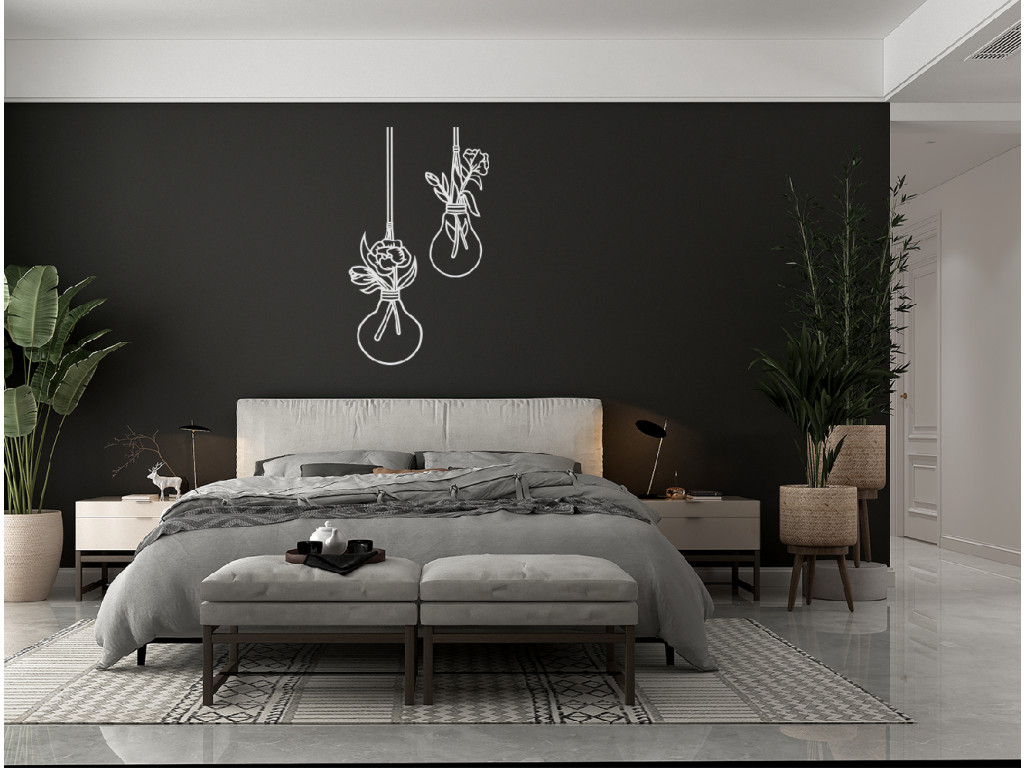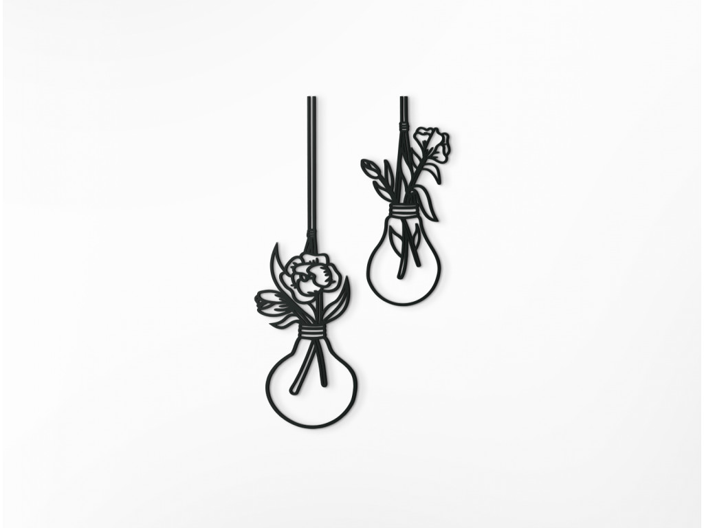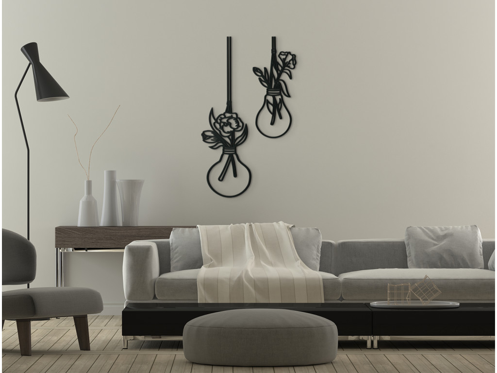 Táto atypická nálepka vytvorí v miestnosti príjemnú atmosféru. Kvety sa v tomto prípade nenachádzajú v obyčajnom ráme. Sú vysadené v žiarovkách, ktoré nálepke pridávajú na jedinečnosti. Žiarovku s kvetmi môžete zavesiť do obývačky, spálne, kuchyne aj chodby. Nálepka je tiež ideálnym darčekom pre milovníčku kvetov.