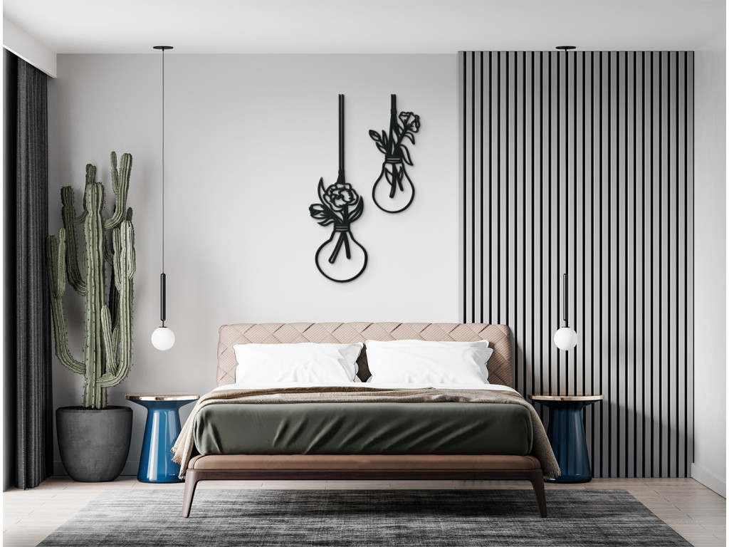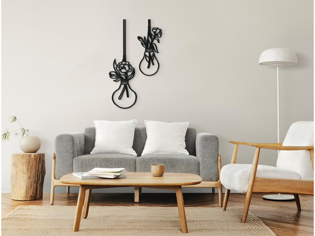 Máte radi netypické dekorácie? Originálna drevená nálepka na stenu je unikátnou dekoráciou do moderných domácností. Kvety sa nachádzajú v dizajnových žiarovkách, vďaka ktorým je obraz nápaditý a originálny. Hodí sa do akéhokoľvek priestoru.