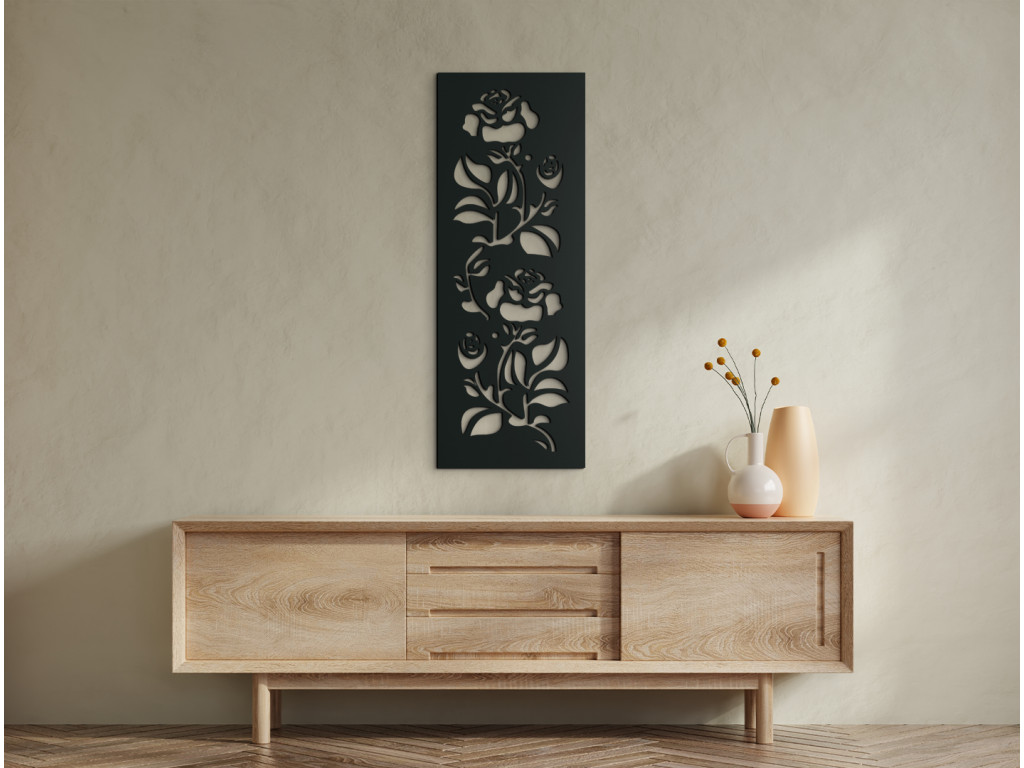 Ruže sú kvetmi, ktoré vedia potešiť každú ženu. Pokiaľ tej vašej chcete venovať ruže, ktoré budú stenu skrášľovať celoročne, máme pre vás jeden nápad. Vyrezávaný obraz Ruže ju bude tešiť dlho. Obraz je zaujímavým doplnkom do chodby, spálne, obývačky aj kuchyne. Vysoké ruže sa ťahajú po obraze, čím je dekorácia ešte zaujímavejšia.