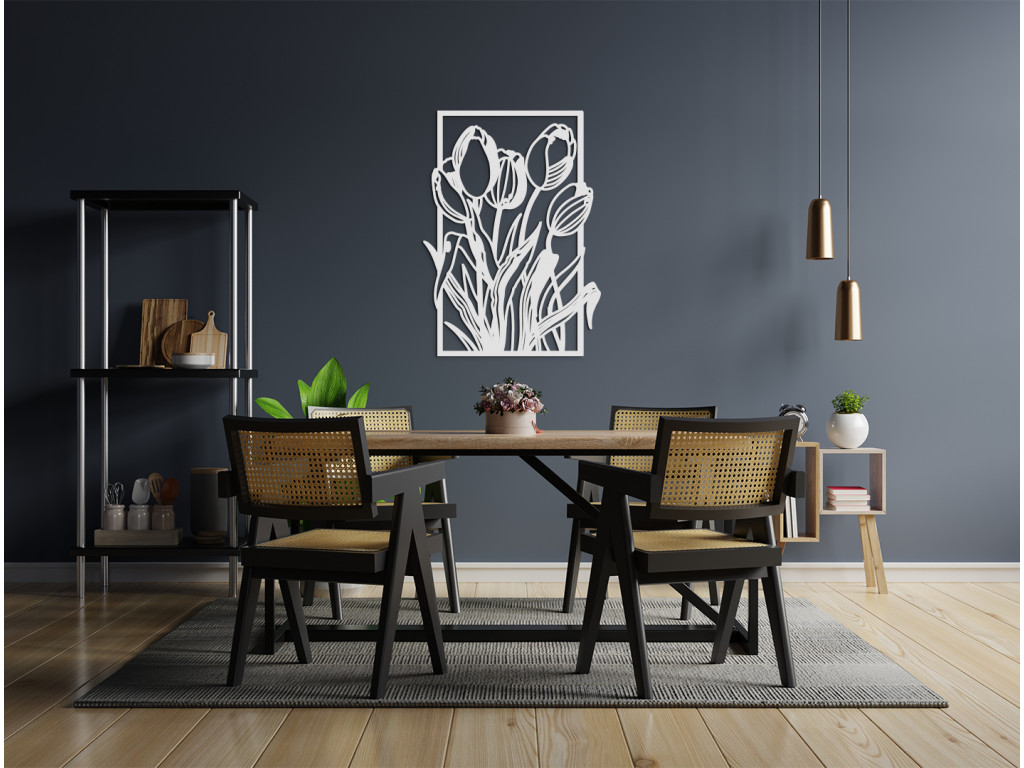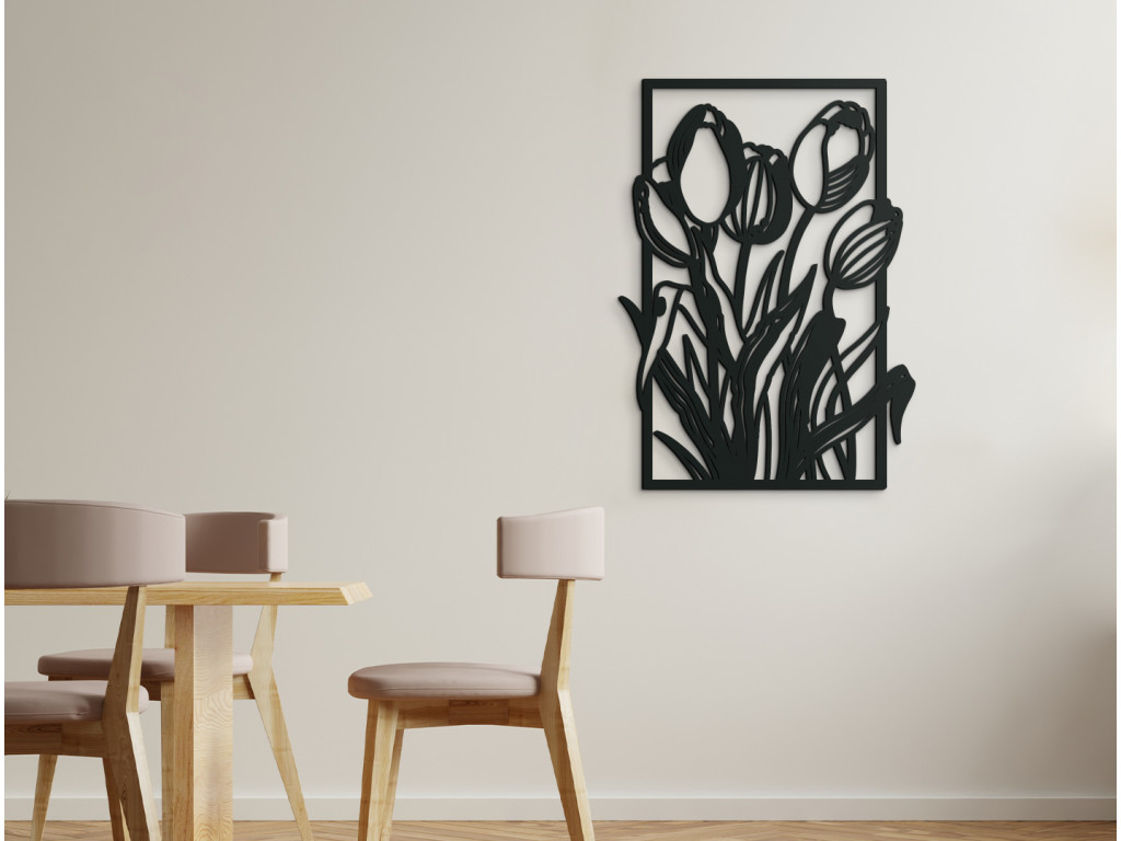 Máte radi tulipány? Vždy keď ich vidíte, zažiaria vám oči? Vyrezávaný obraz Tulipány vyrobený z kvalitného materiálu, vnesie do miestnosti eleganciu a nadčasovosť. Na dekorácii je vyobrazených 5 tulipánov ťahajúcich sa hore. Vďaka možnosti výberu odtieňa farby ho viete ľahko skombinovať s akýmkoľvek štýlom.