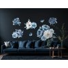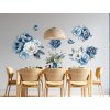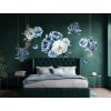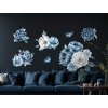 Voľne maľované kvety v odtieňoch bielej a modrej, pripomínajúce pivonky alebo ruže, vytvárajú jemnú a vzdušnú kompozíciu plnú elegancie. Expresívny štýl s akvarelovými prechodmi zvýrazňuje tvary kvetov a listov bez zbytočných detailov, čím dielo pôsobí sviežo a moderne.