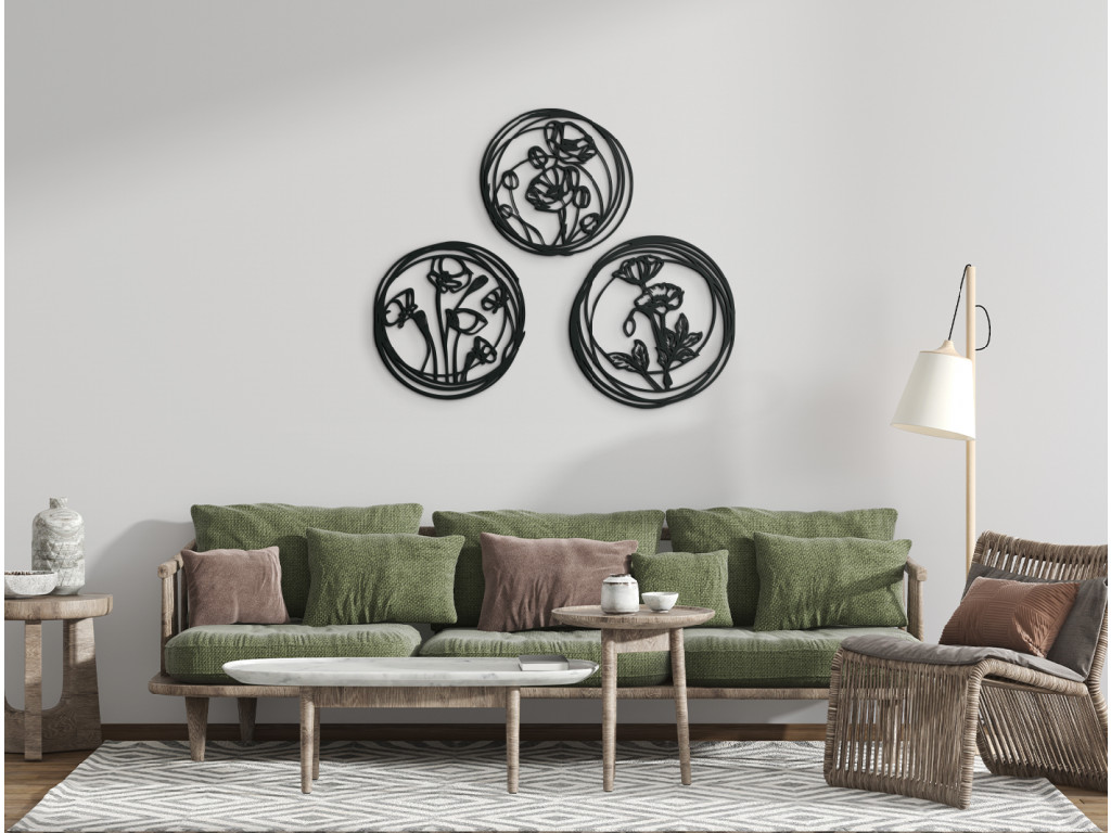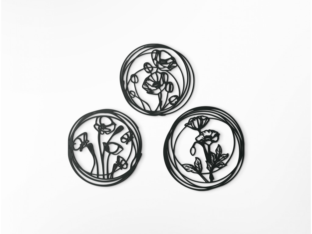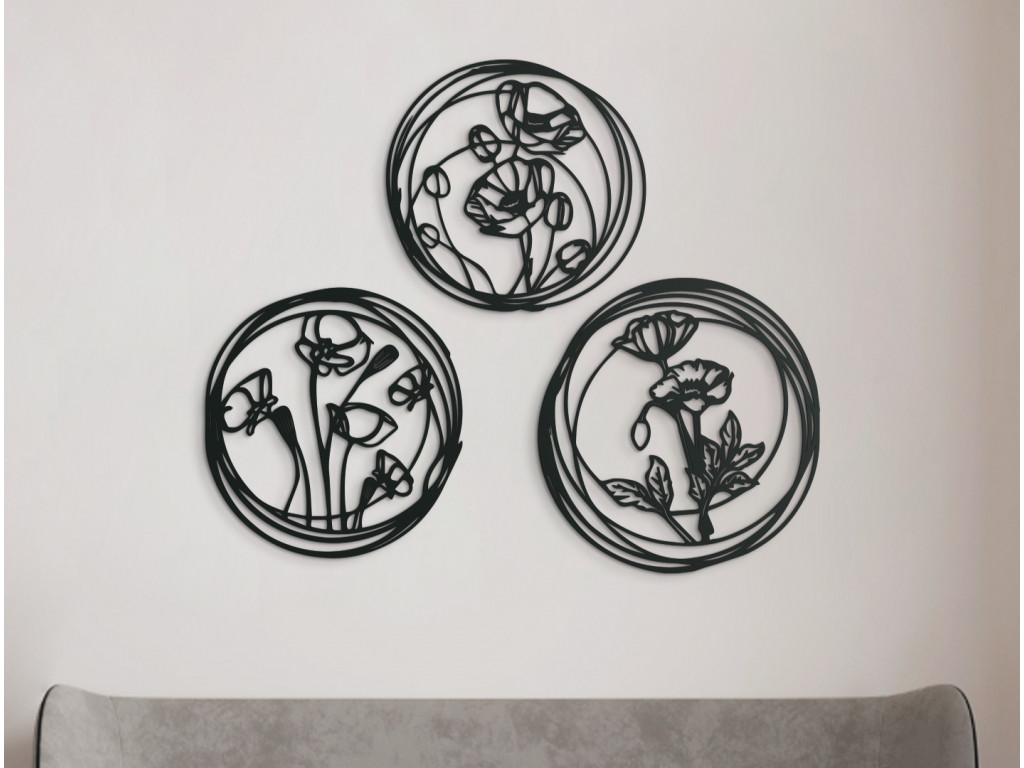 Drevený obraz Divé maky vnesie do interiéru jemnosť a eleganciu. Je vyskladaný z 3 dielov, ktoré môžu byť zavesené spolu alebo osobitne. Divé maky sú akoby vložené do abstraktného rámu, ktorý si získava pozornosť. Obrazy vyniknú v modernom aj klasickom interiéri.
